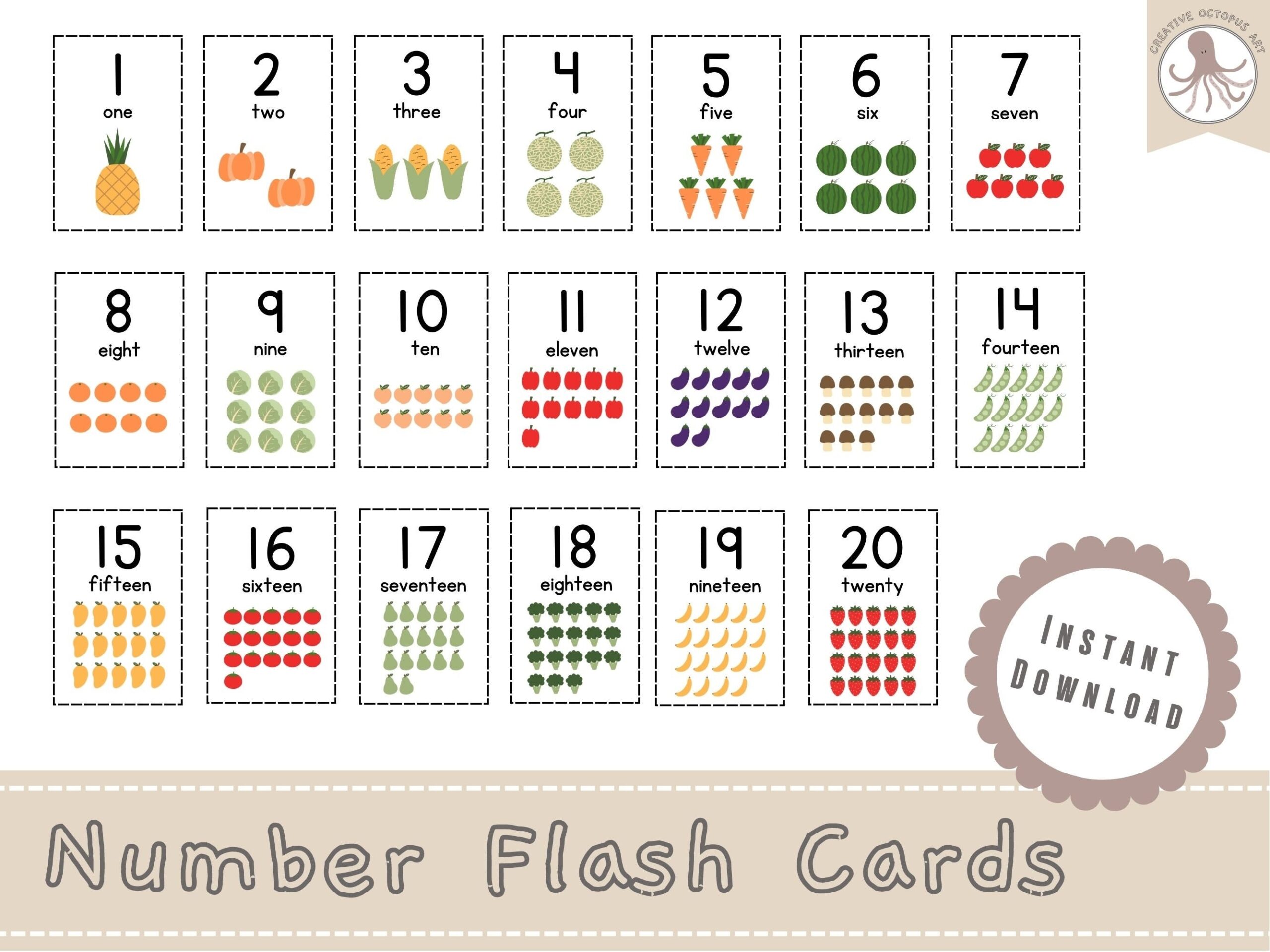 Numbers 1 20 Printable Flashcards Instant Download Numbers Classroom Flashcards Pre k Flash Cards Etsy
