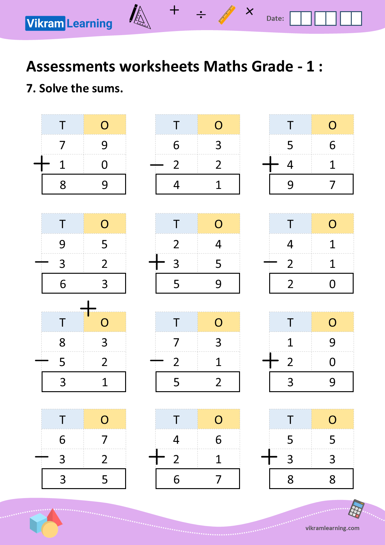 Class 1 Math Worksheets Practice And Learn