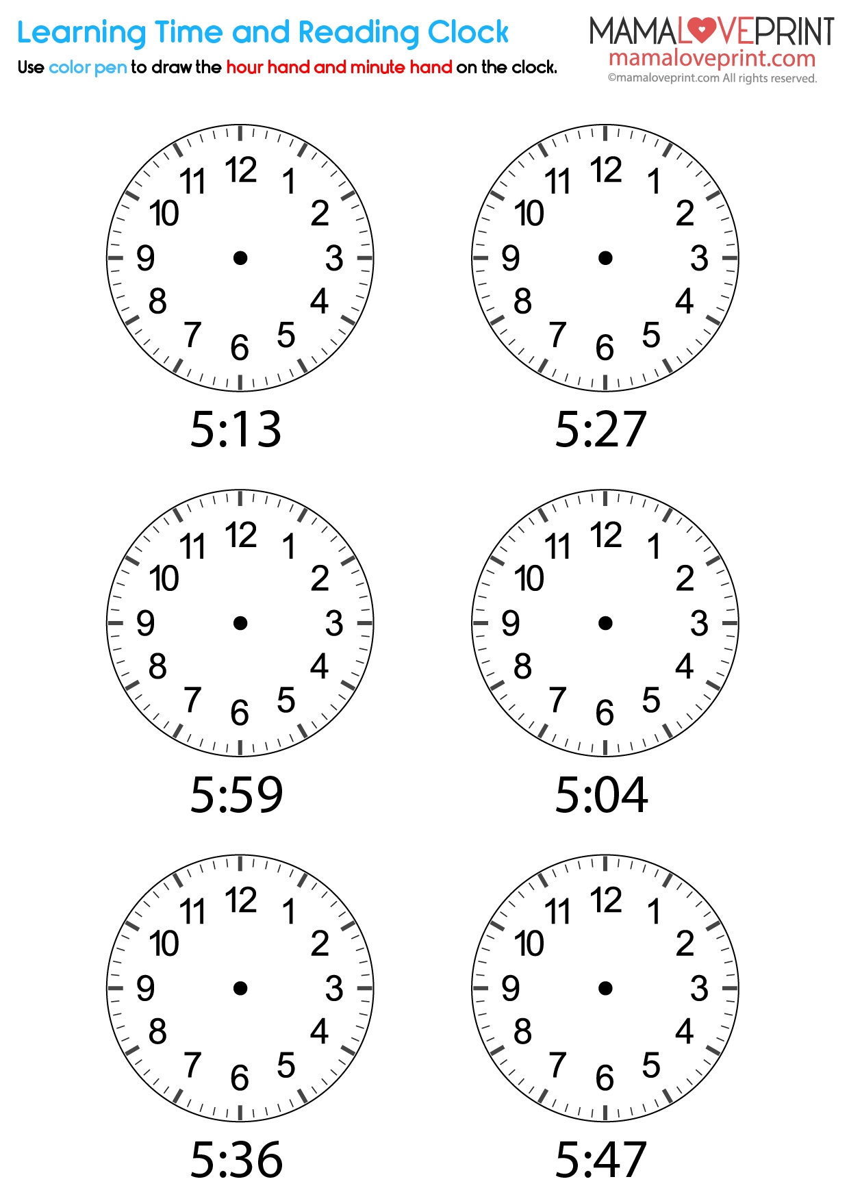 MamaLovePrint Math Worksheets Learning Time Level 5 1 Minute Intervals Without Numbers Math Worksheets PDF Free