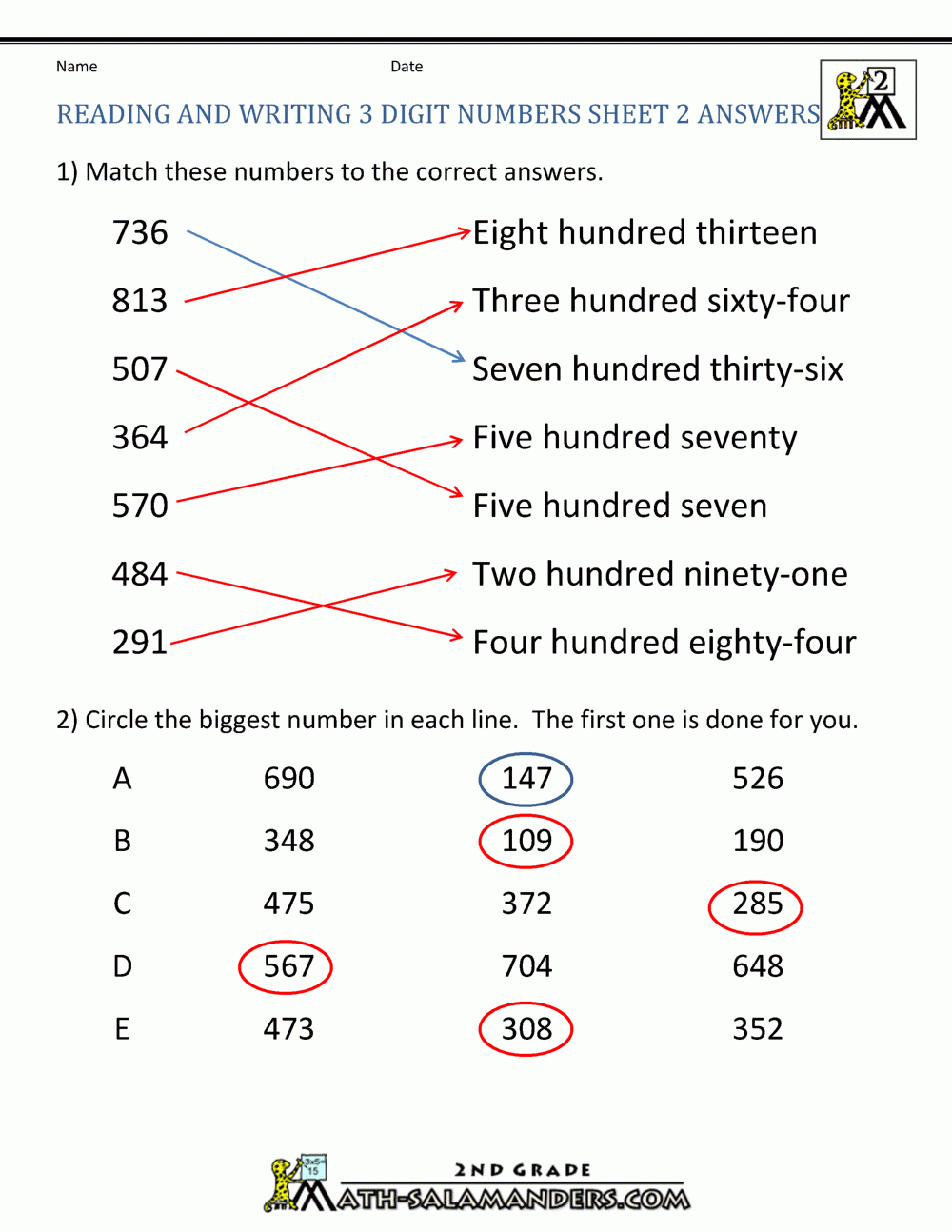 Free Place Value Worksheets Reading And Writing 3 Digit Numbers