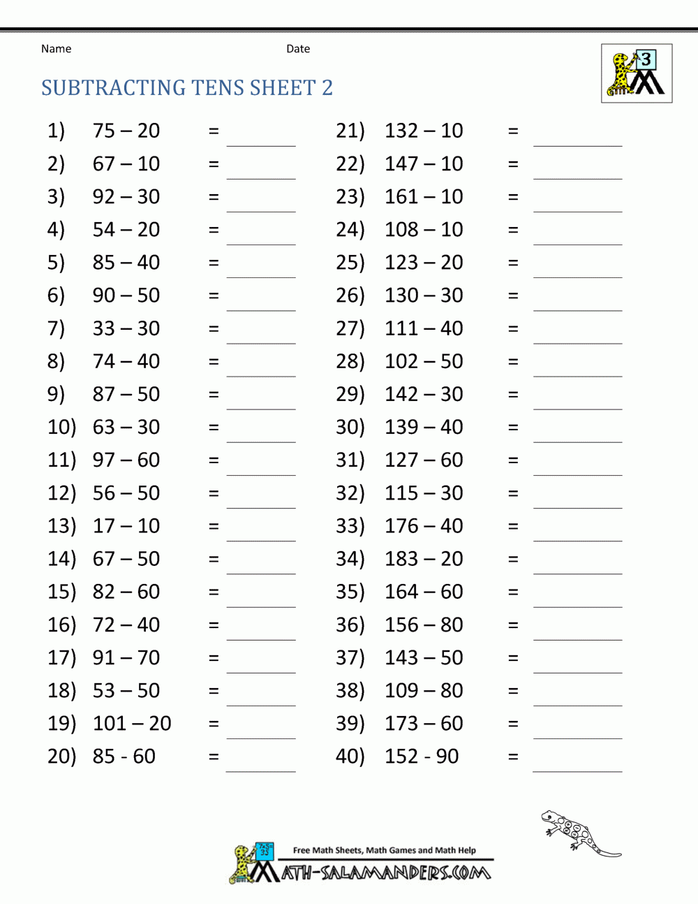 3rd Grade Subtraction Worksheets PDF Printable Worksheets Cazoom Math