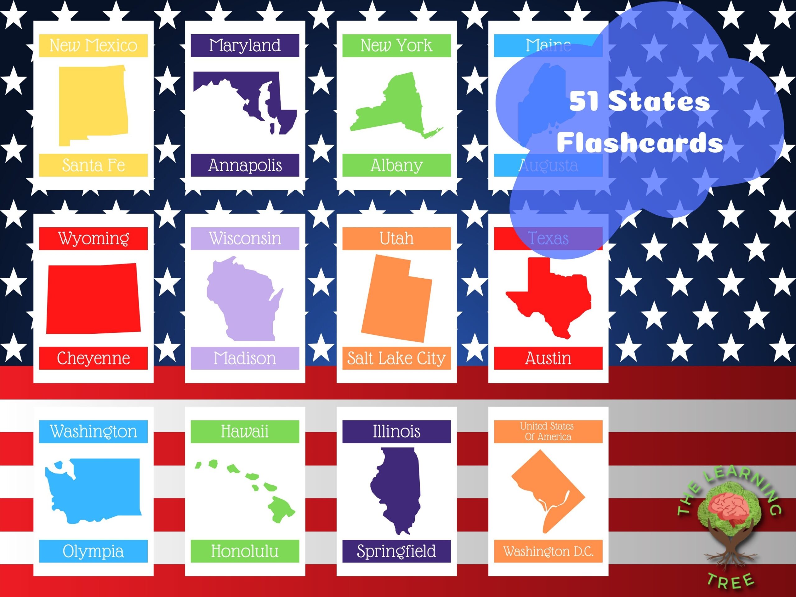 Basic 50 States Washington D C Flashcards Digital Download Educational Flashcards Etsy Canada