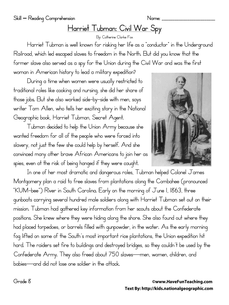 Eighth Grade Reading Comprehension Worksheets Passages Question Sets