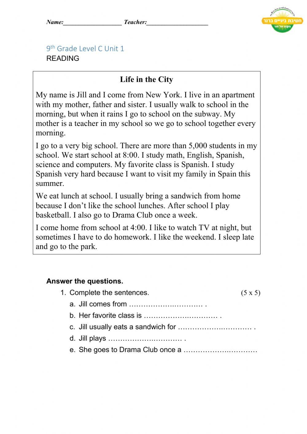 Grade 9 Reading Comprehension Worksheets Reading Comprehension Worksheets Library