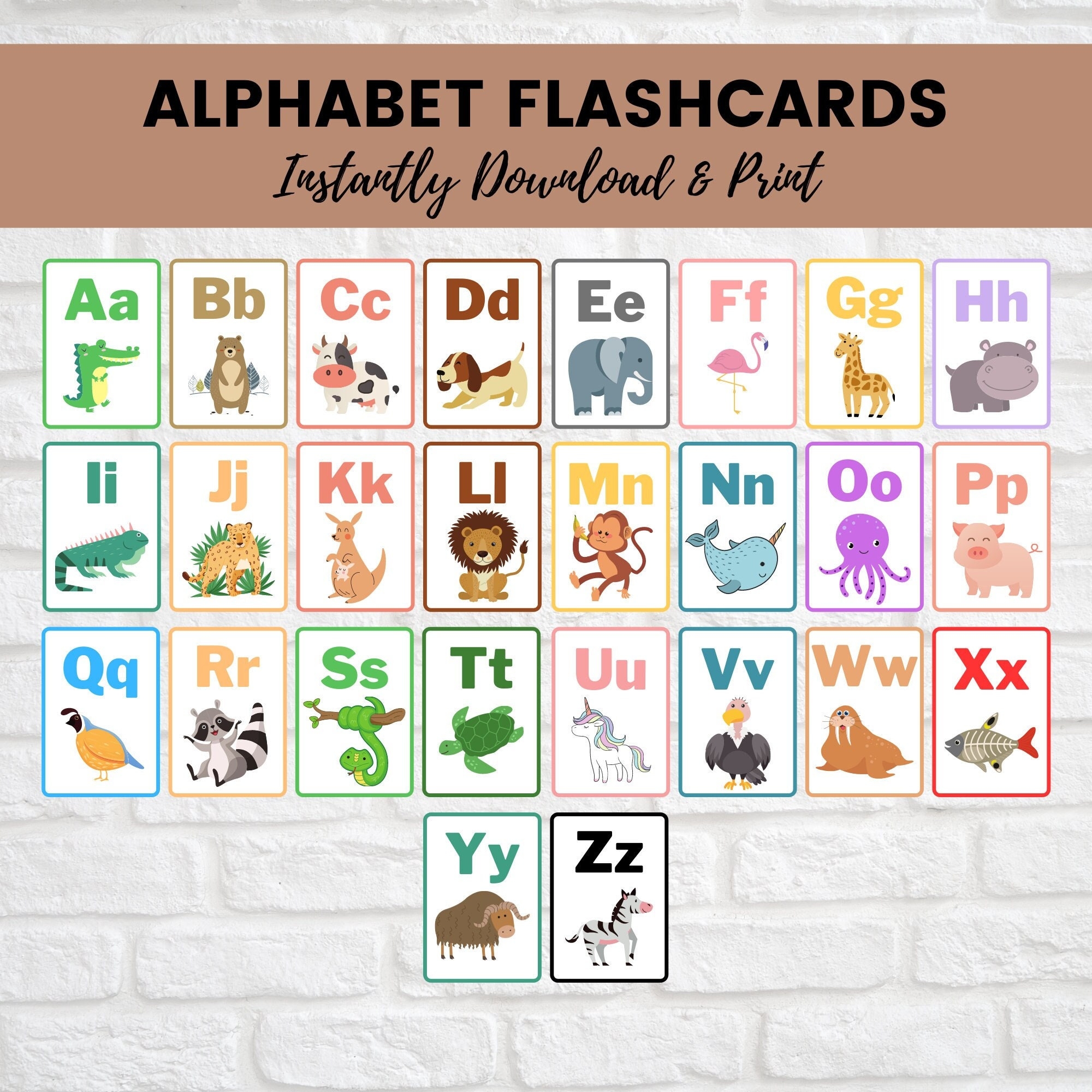 Animal Alphabet Flashcards Printable Letter Flash Cards Homeschool Back To School Preschool Kindergarten Digital Download ABC Activity Etsy
