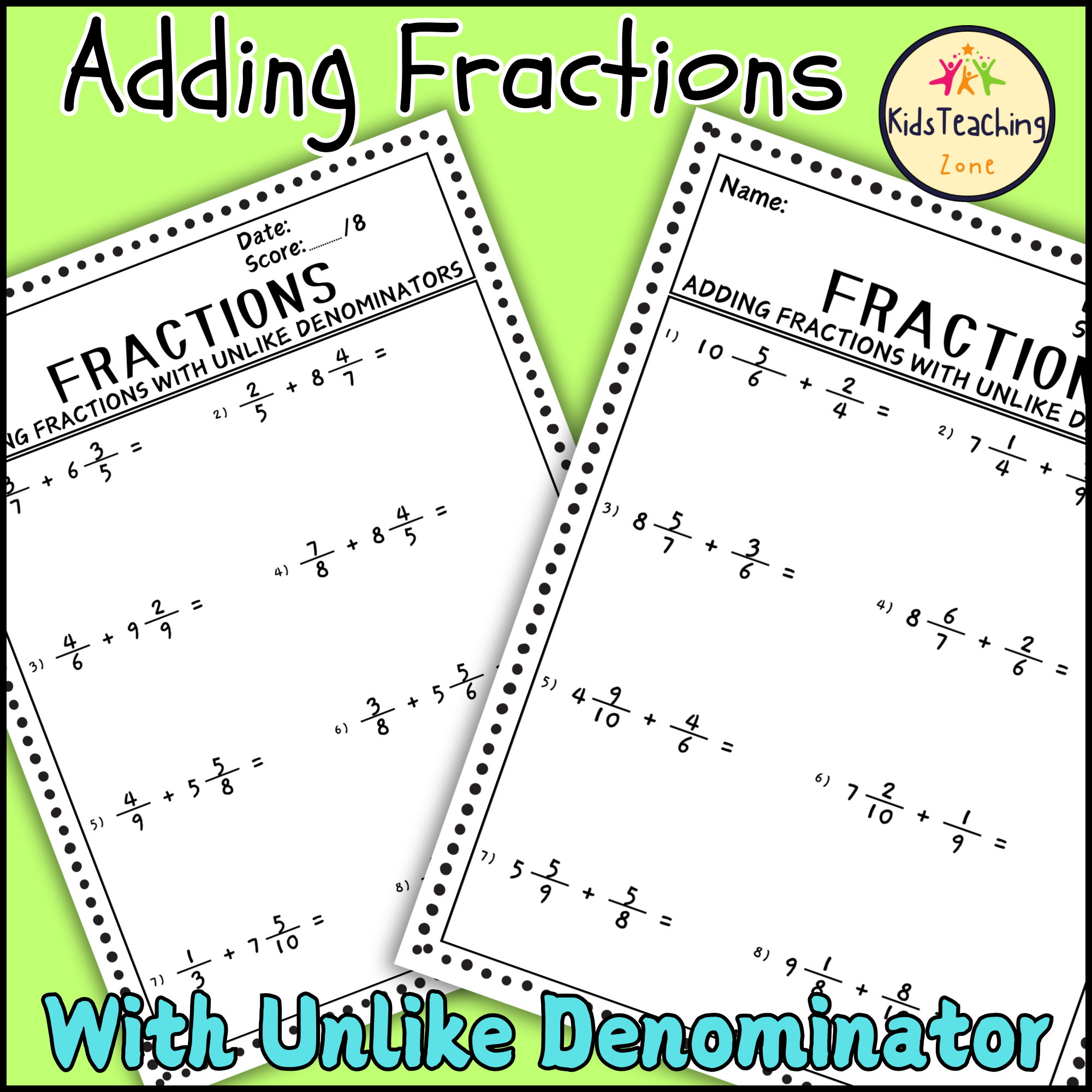 Adding Fractions With Unlike Denominator Worksheets Practice Teaching Resources