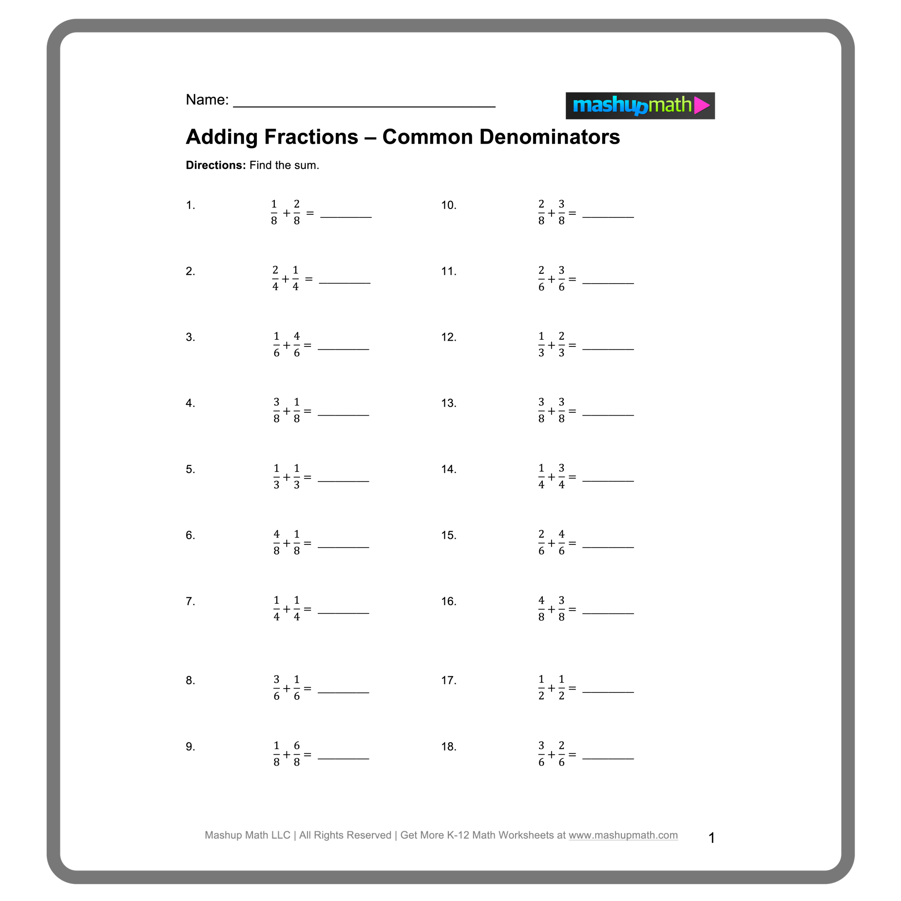 Adding Fractions Worksheets