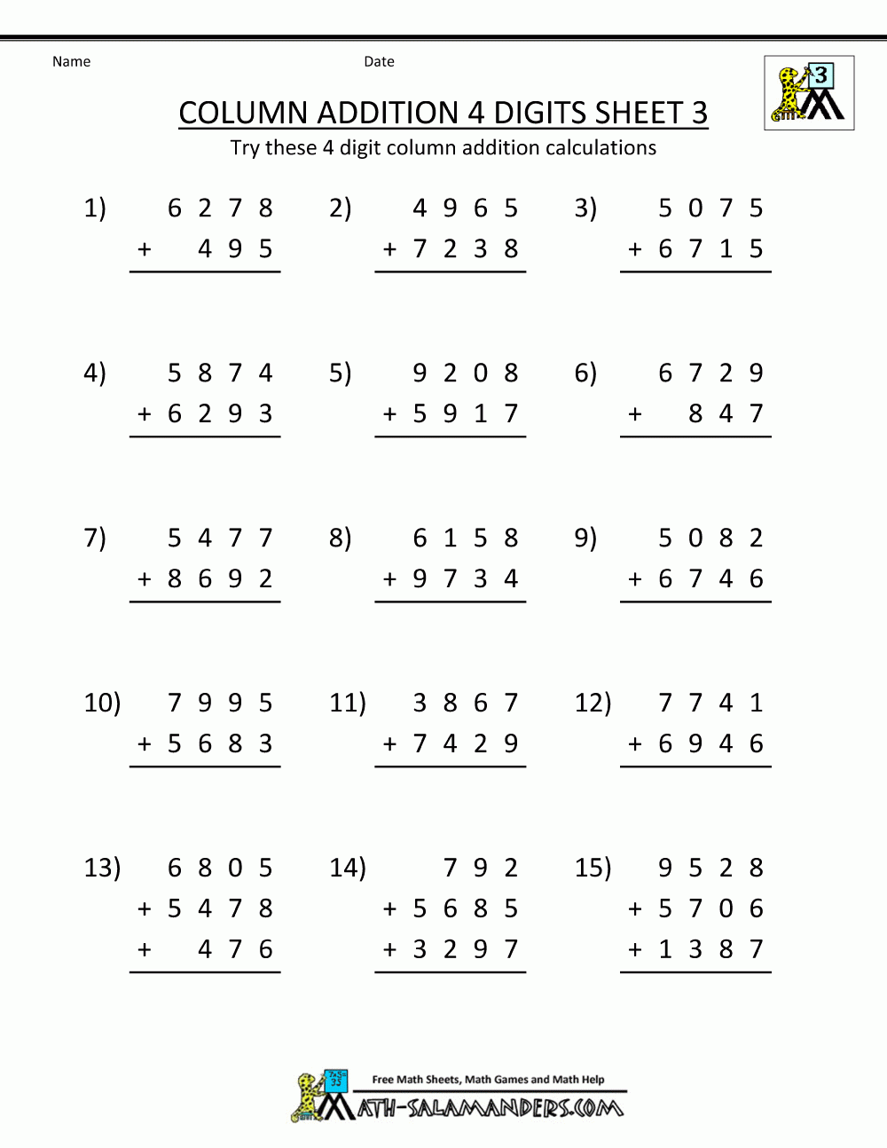 Addition Worksheets for 3rd Graders
