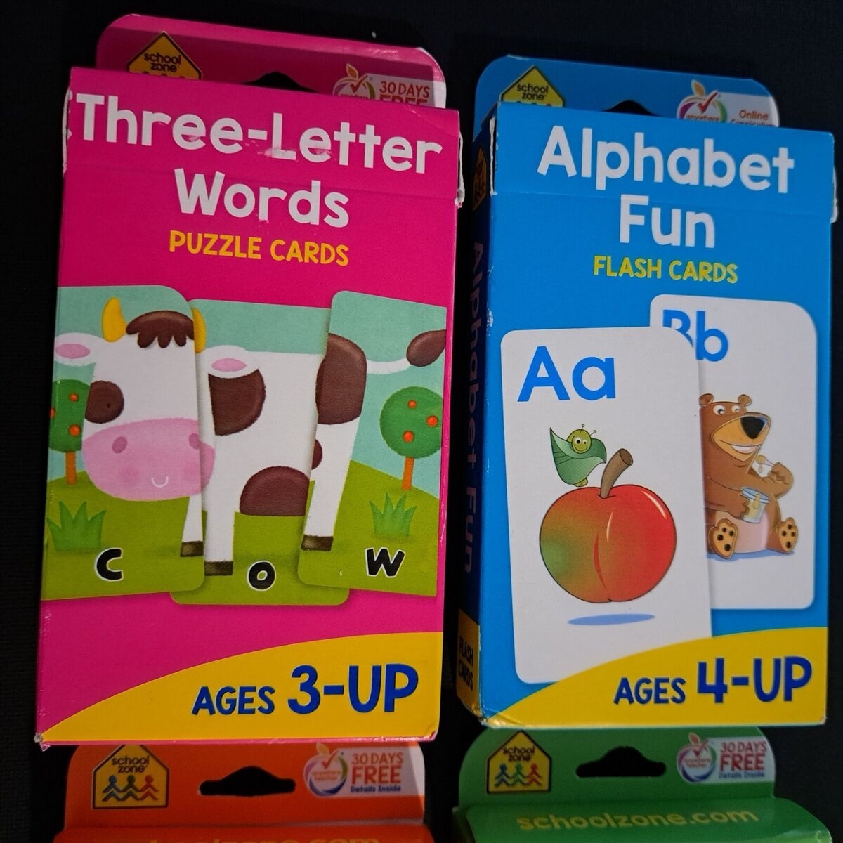 4 Pack School Zone Fun Flash Cards Set Alphabet Numbers Picture Words Puzzle EBay de