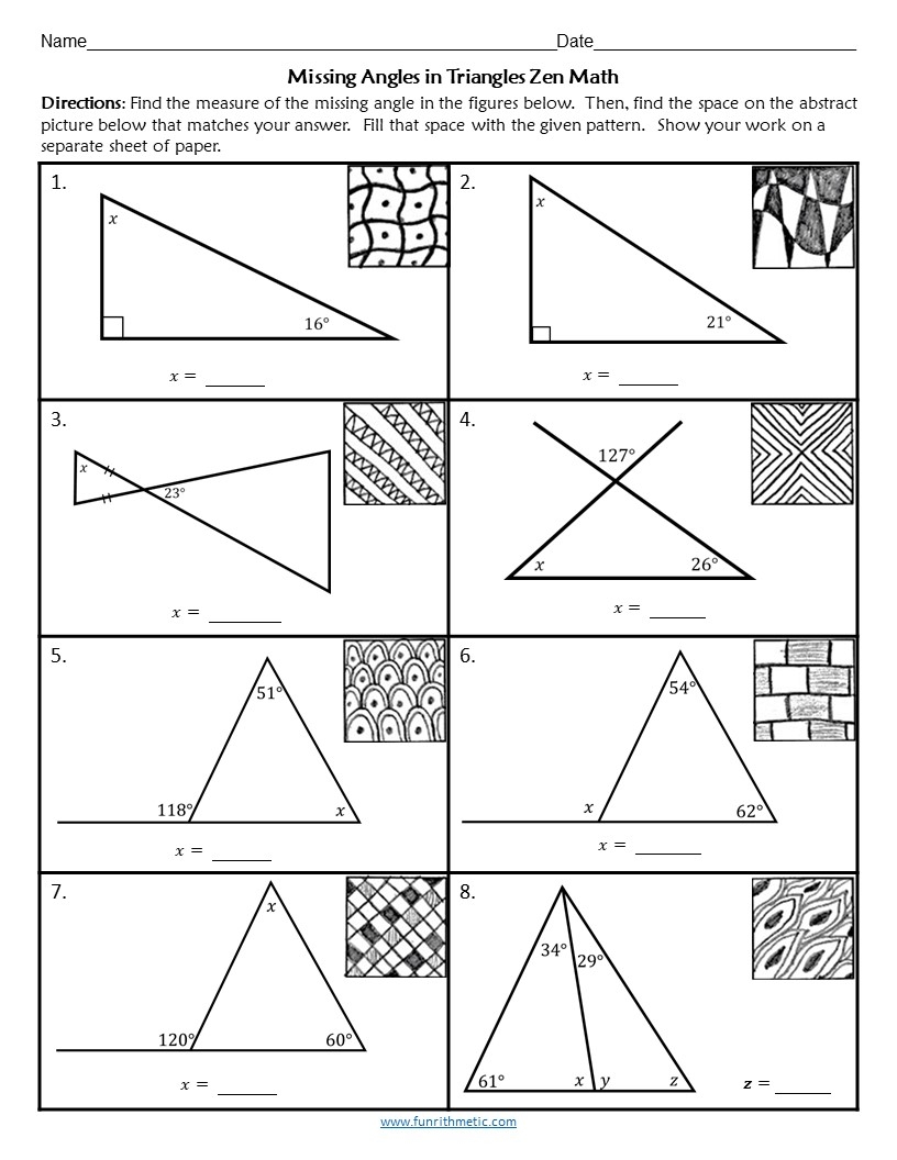 Missing Angles In Triangles Zen Math Funrithmetic