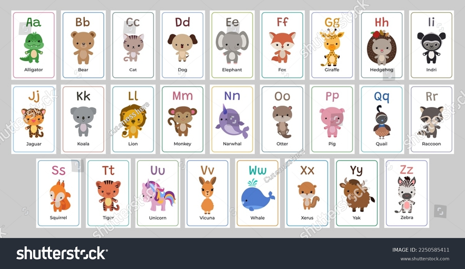 English Alphabet Flashcards Animals Letters Cute Stock Vector Royalty Free 2250585411 Shutterstock