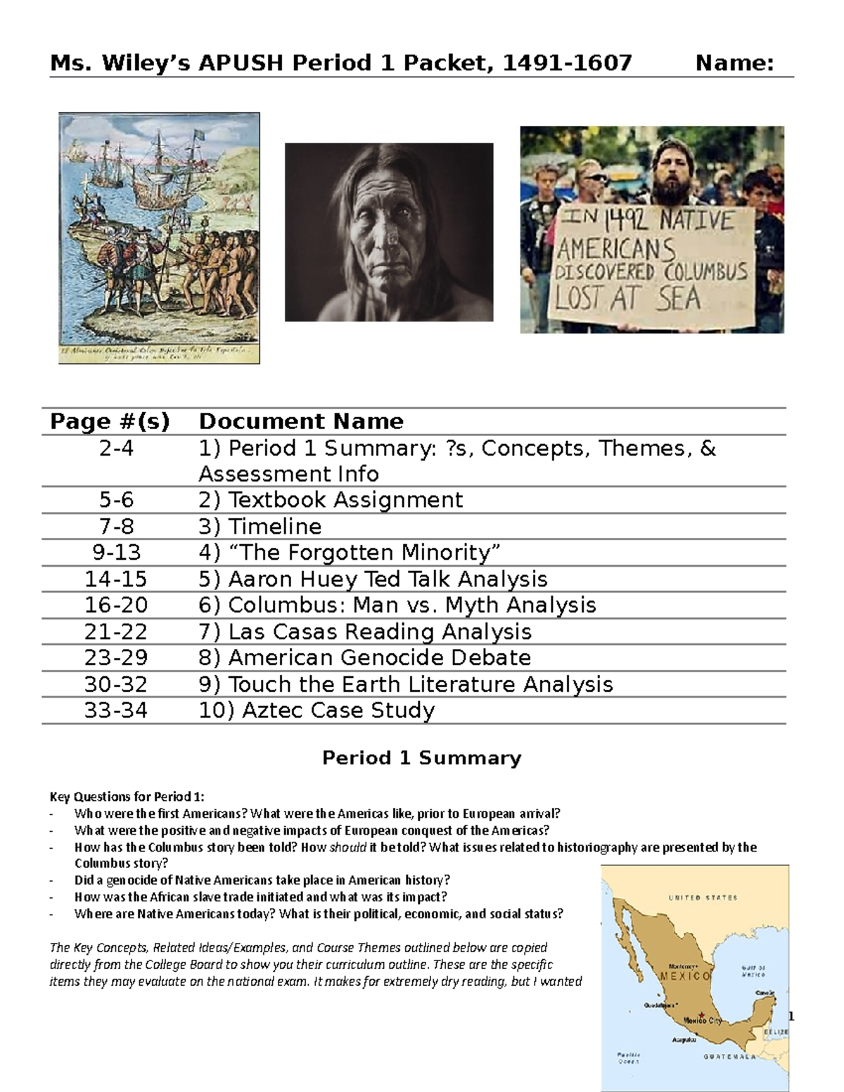 APUSH Period 1 Study Guide Key Themes Concepts Assessments 1491 1607 Studocu