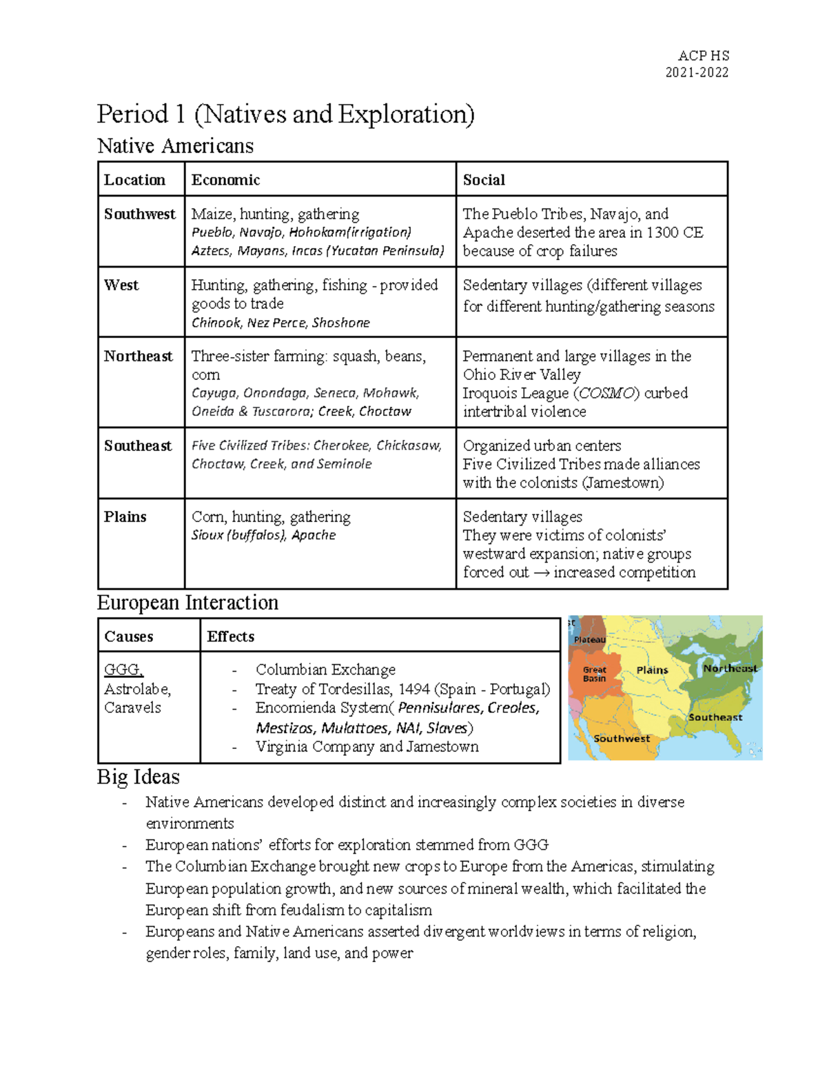 APUSH U1 Unit 1 Study Guide ACP HS 2021 Period 1 Natives And Exploration Native Americans Studocu