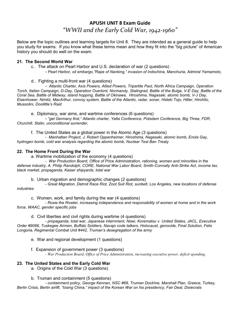 APUSH Unit 8 1945 1980 Lecture Notes On Cold War And Civil Rights Studocu