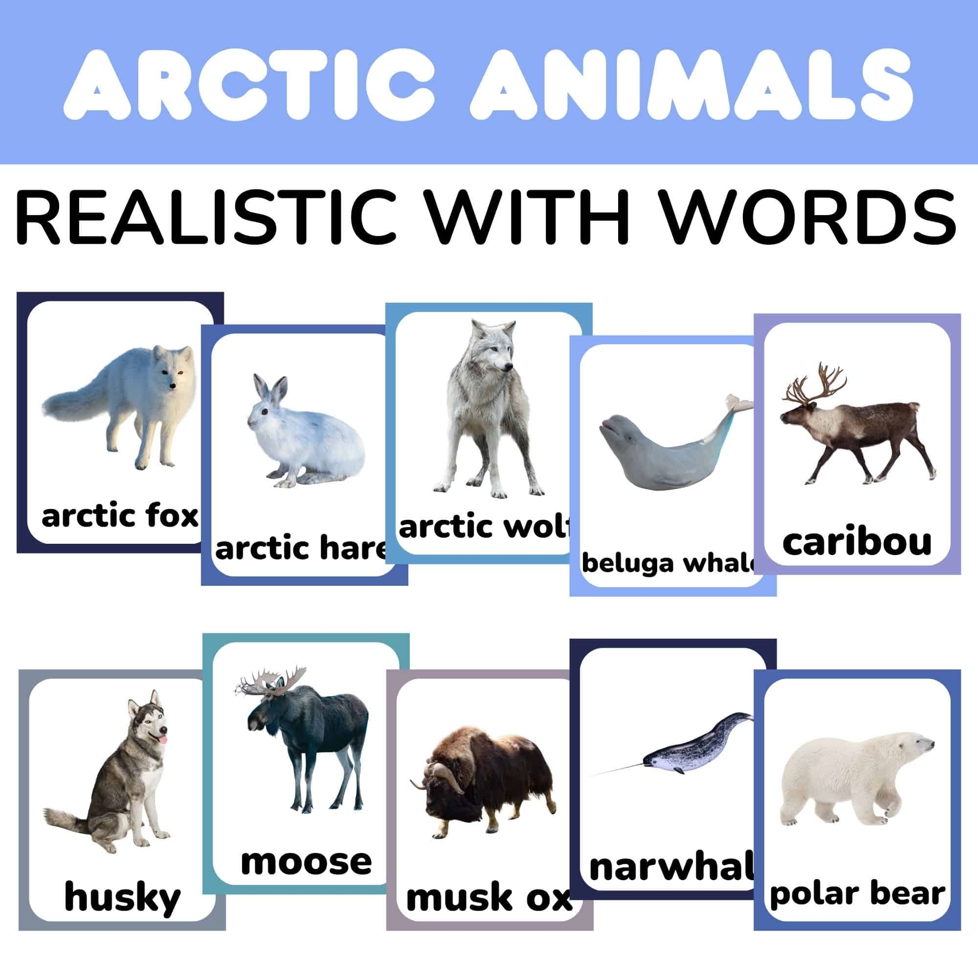 FREE Realistic Arctic Animal Flashcards With Words PDF
