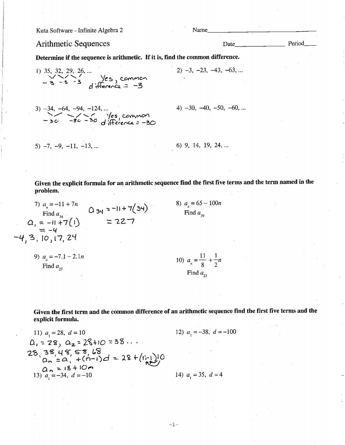 Arithmetic Sequence Worksheet