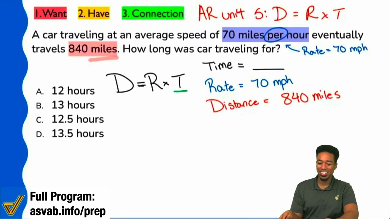 ASVAB Arithmetic Reasoning Practice Test Question Distance Rate Time Word Problem YouTube
