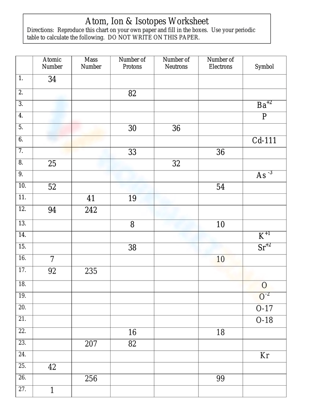 Atoms Isotopes And Ions Worksheet