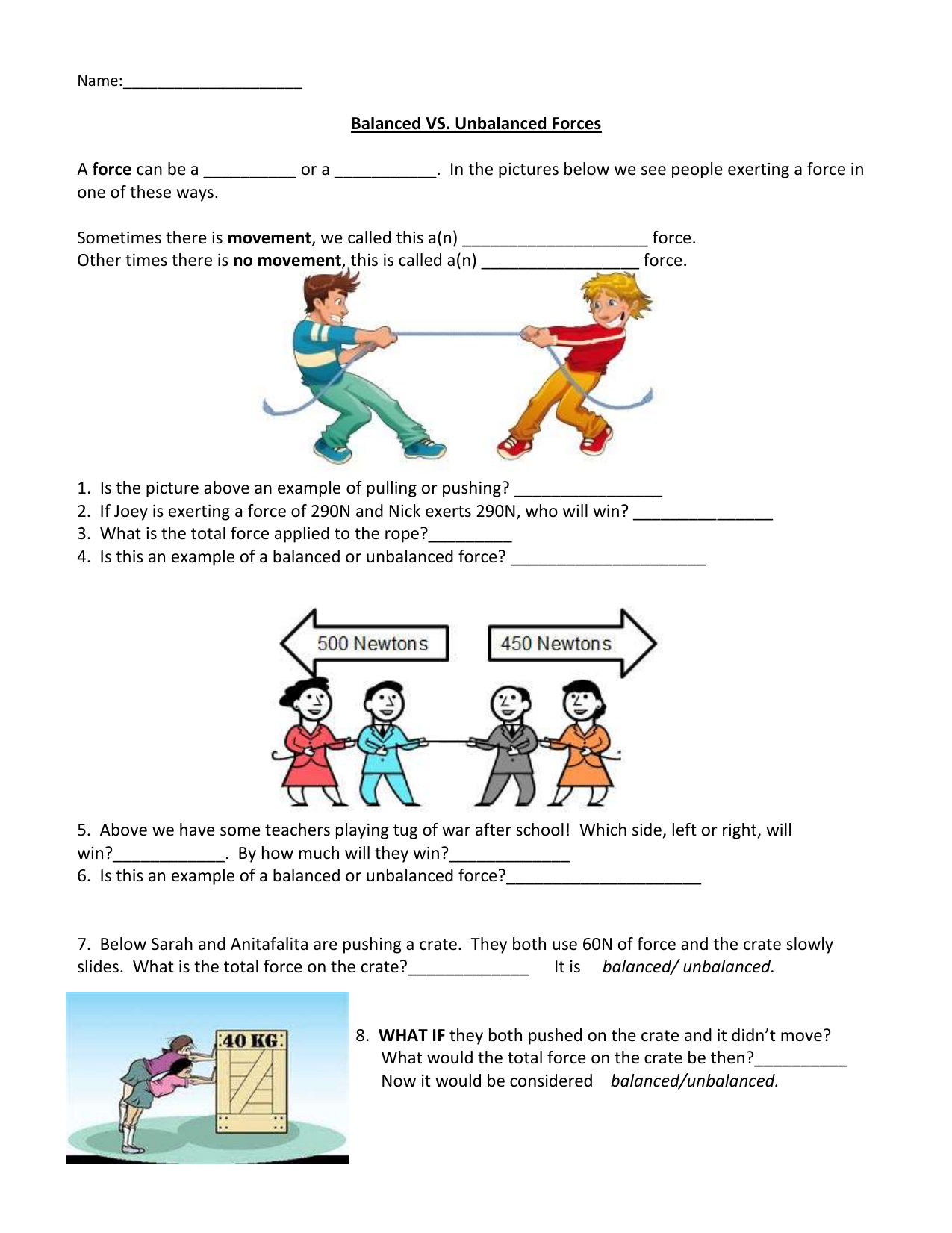 Exploring Balanced and Unbalanced Forces with a Worksheet