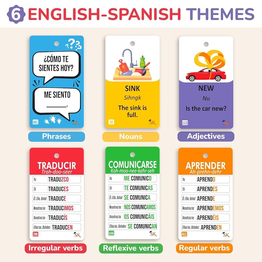 Amazon 500 Spanish Vocabulary Flash Cards For Adults Kids Ages 15 Verb Conjugation Nouns Adjectives Phrases To Learn Spanish For Adult Beginners Flashcards Toys Games