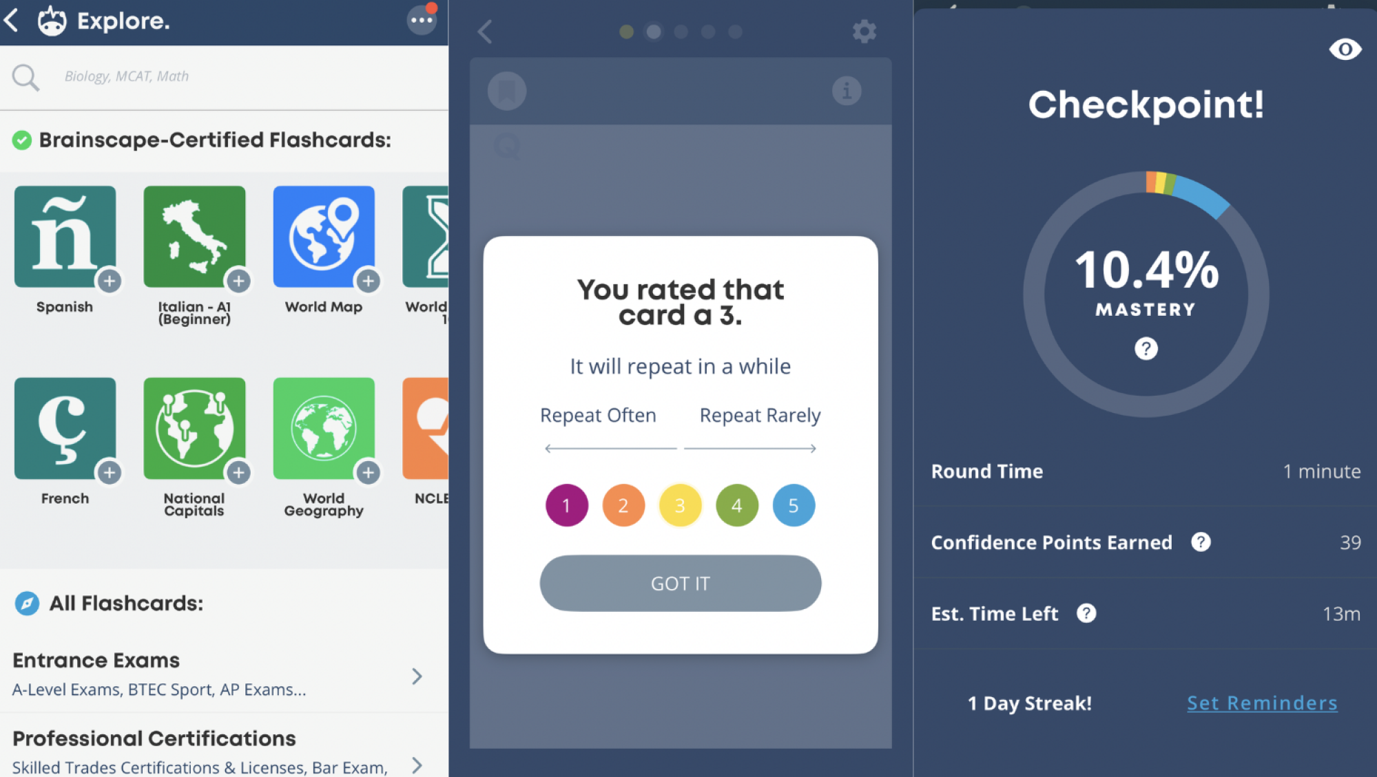 Another great feature of Brainscape Flashcards App is the spaced repetition algorithm. This smart technology helps you learn more efficiently by showing you the cards you struggle with more often, while the ones you ace are shown less frequently. This way, you can focus on the areas where you need the most help.