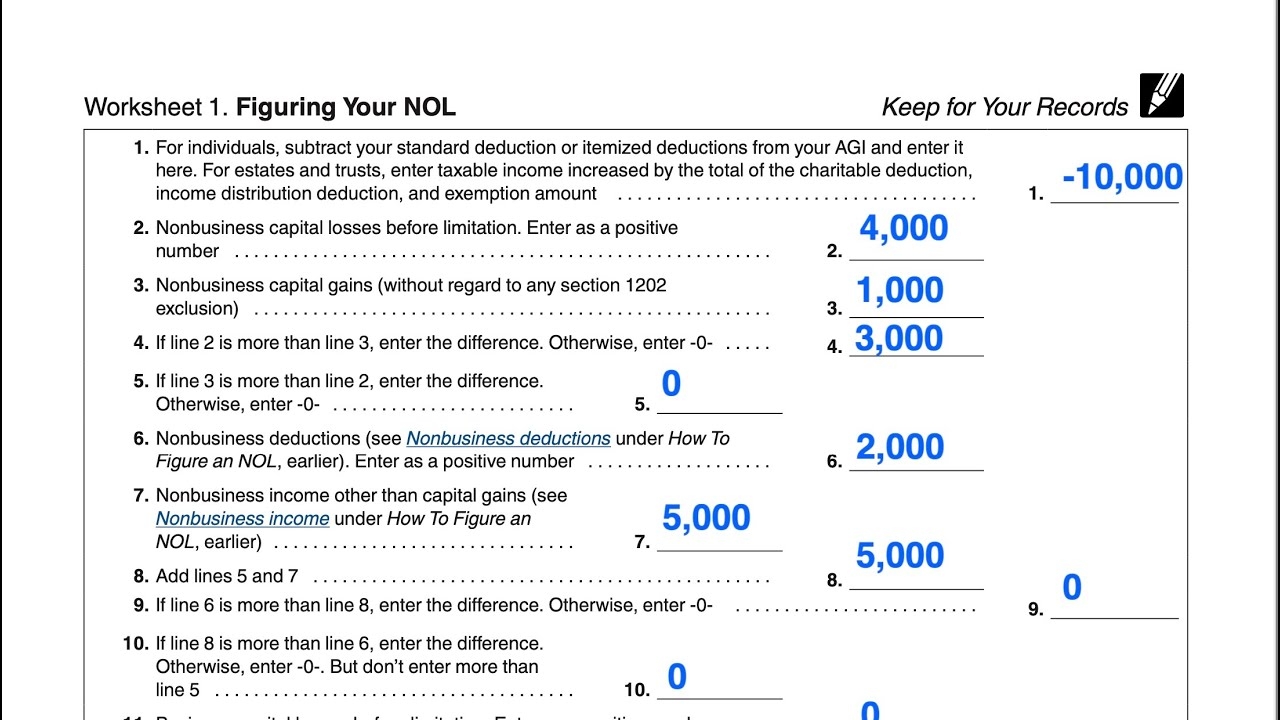 Figuring Your NOL Deduction Worksheet 1 IRS Publication 536 YouTube