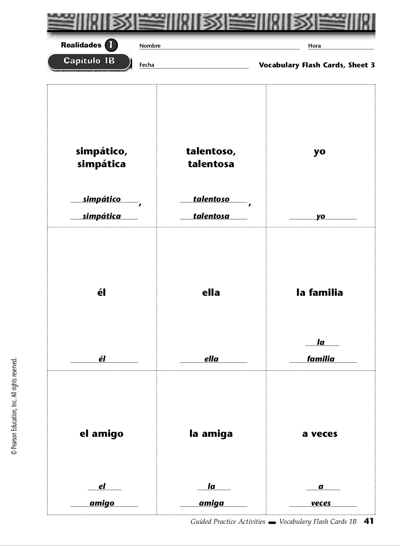 Capitulo 2a Vocabulary Flashcards Sheet 1 Answers