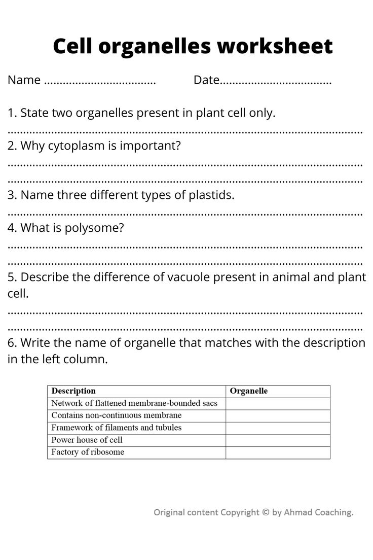 Printable Grade 7 Cell Organelles Worksheets