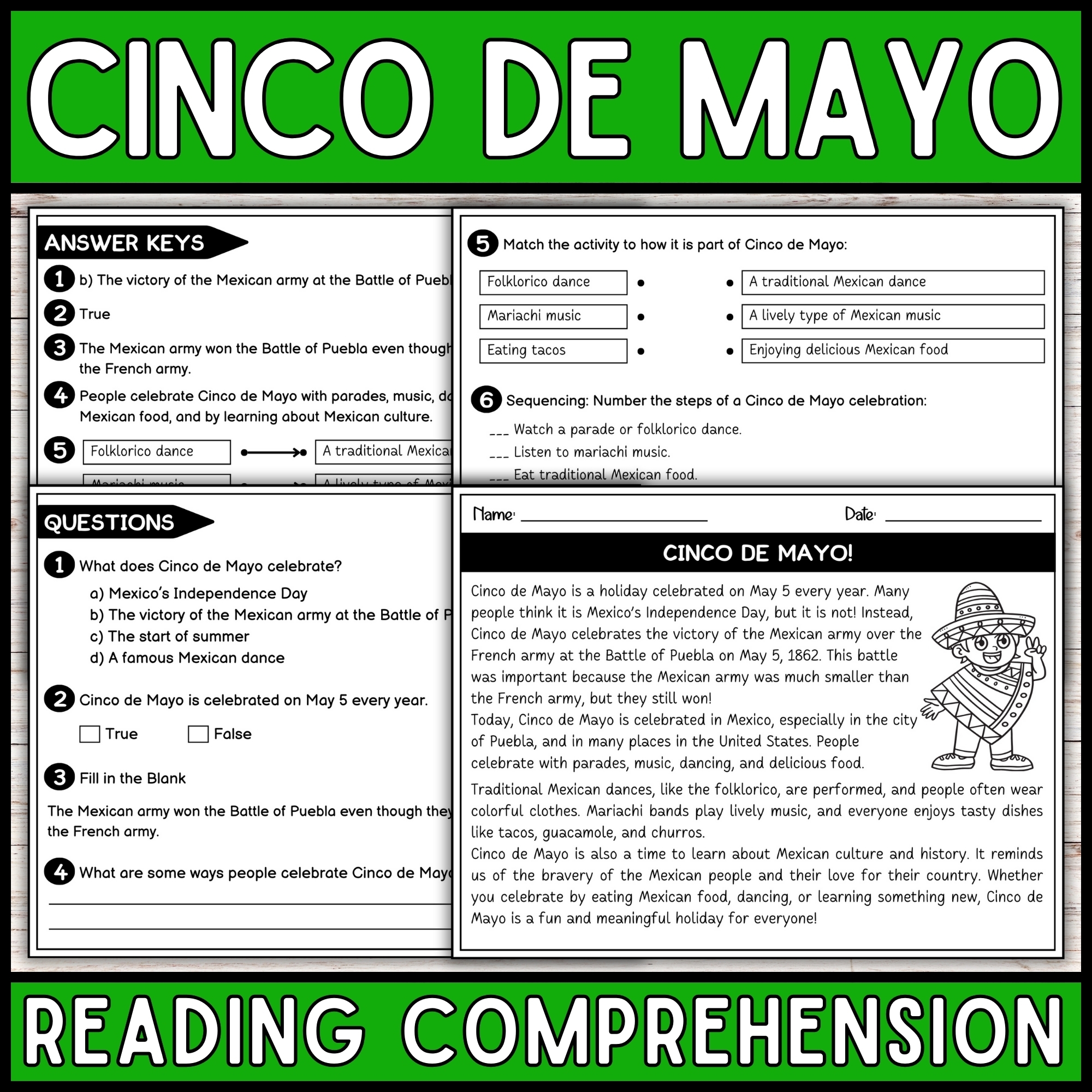 Cinco De Mayo Reading Comprehension Worksheets