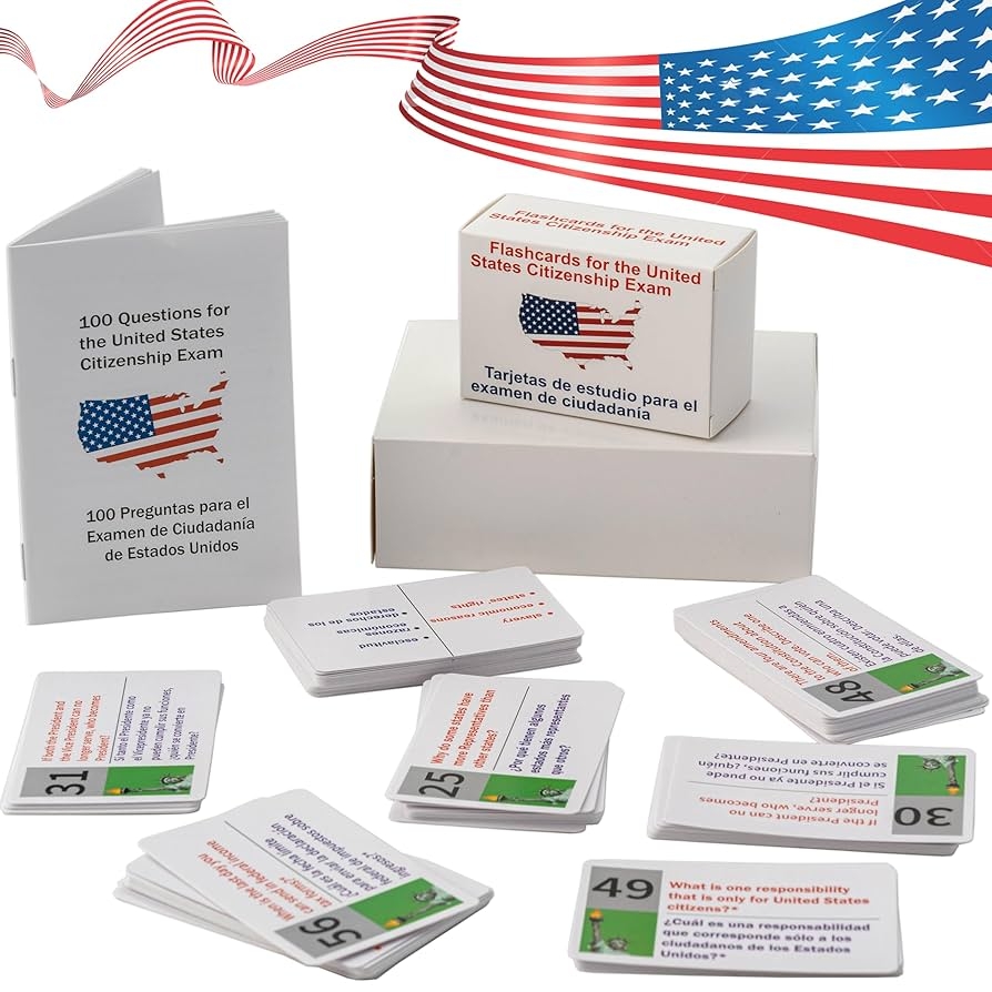 Amazon US Civic Test Flash Card 2025 100 USCIS Citizenship Flash Card Questions Answers Bilingual Spanish English Naturalization Study Guide US Civics Test Flash Cards Bilingual Booklet Combo Set Toys