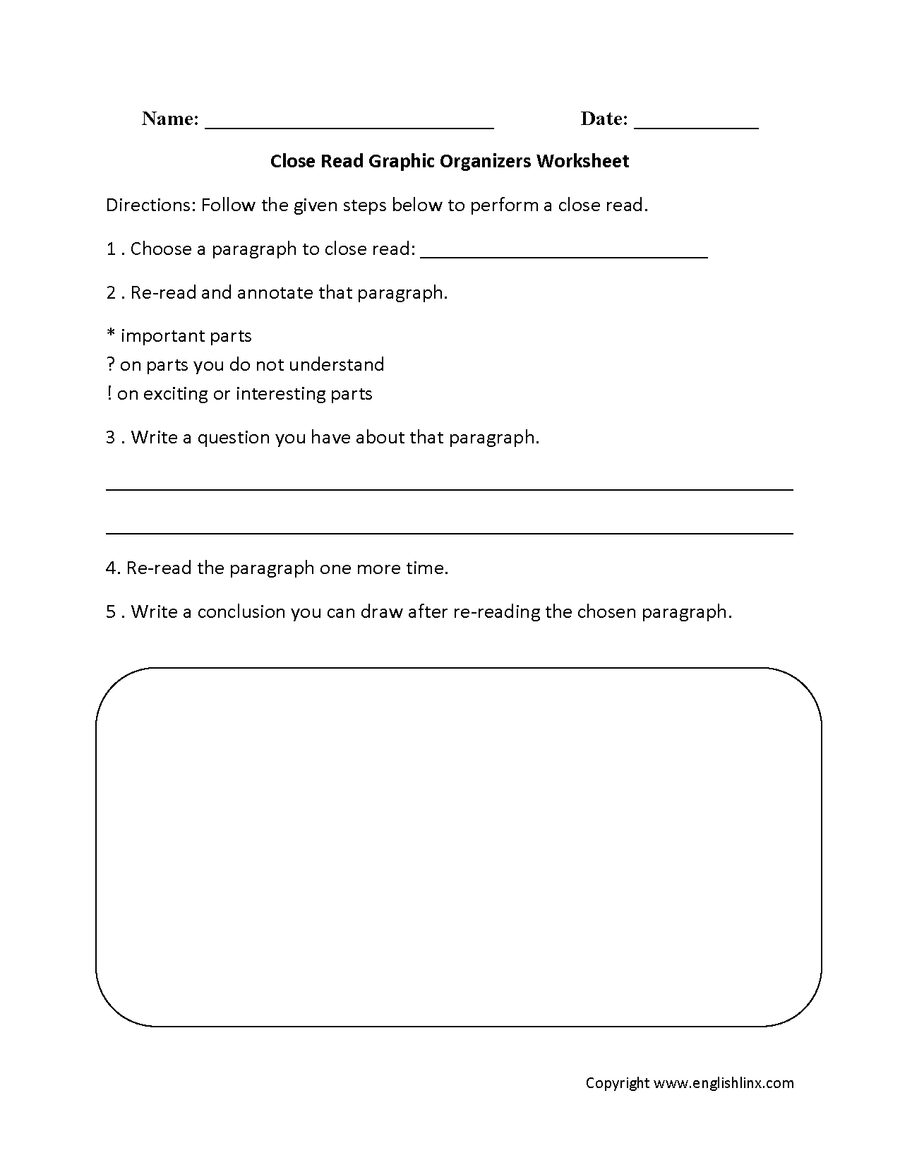 close reading worksheet