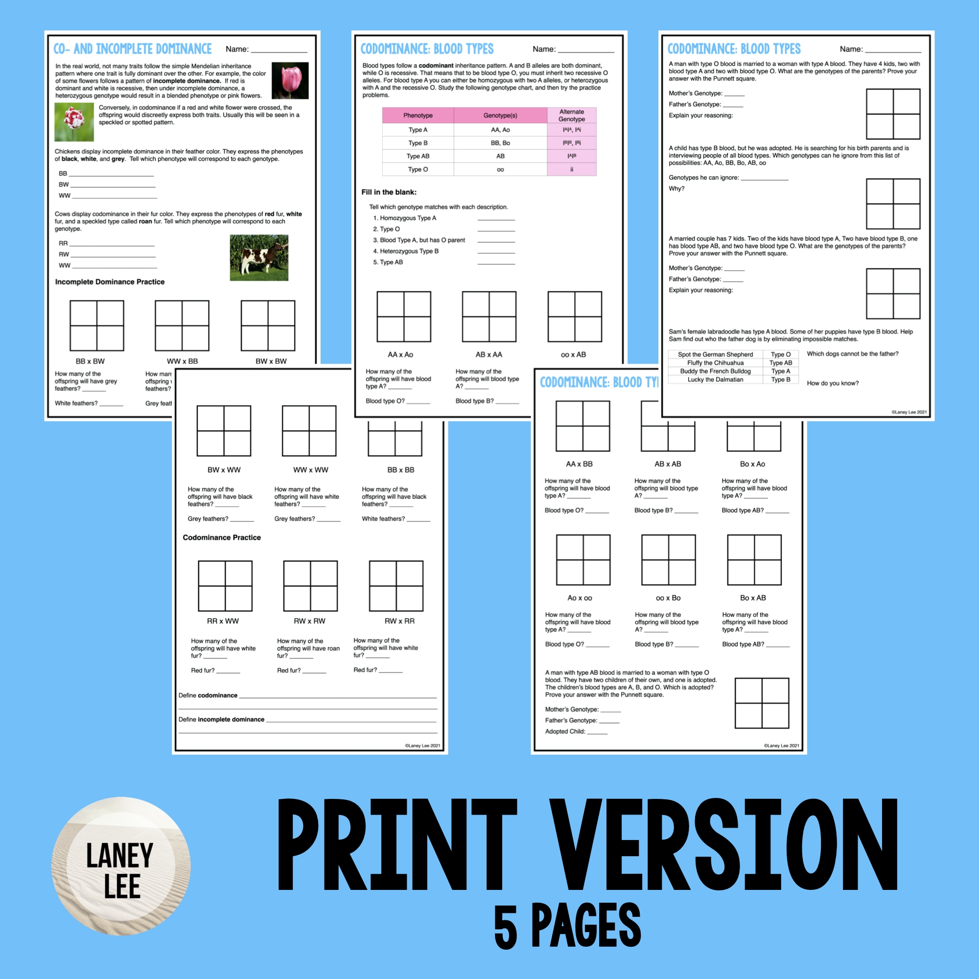 Blood Type And Codominance Genetics Worksheet Flying Colors Science