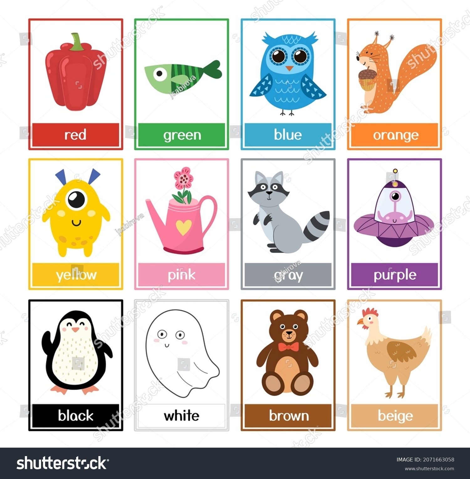 Color Flashcards Collection Cute Animals Color Stock Vector Royalty Free 2071663058 Shutterstock