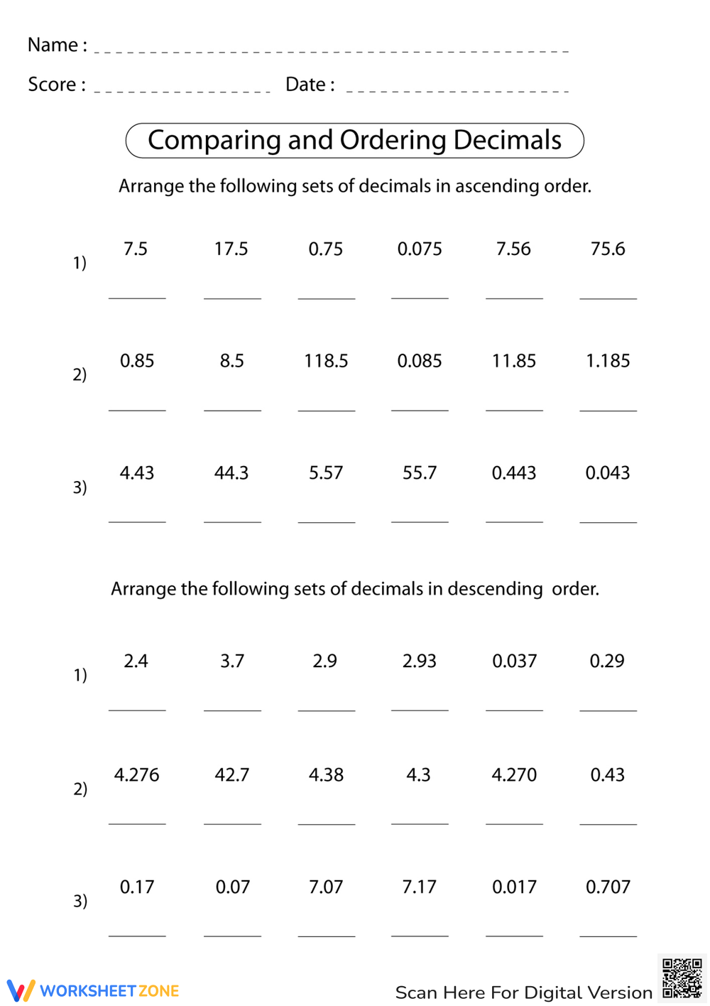 One key benefit of using a comparing decimals worksheet is that it allows you to practice this skill in a structured and repetitive way. This repetition is essential for reinforcing the concepts in your mind and building your confidence in comparing decimals independently.
