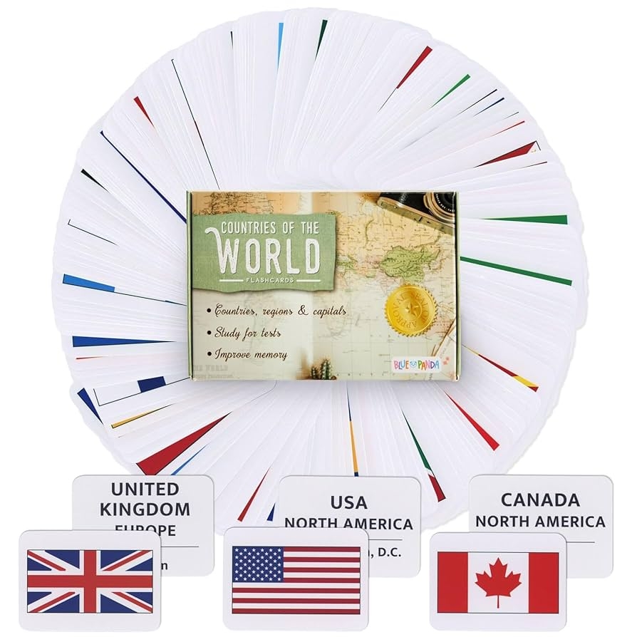 Blue Panda 205 Countries Of The World Flags Flashcards For Education Kids Geography Maps With Continent And Capital Country Flag Flashcards For Kids 2 5 X 3 5 Inches Amazon de Toys