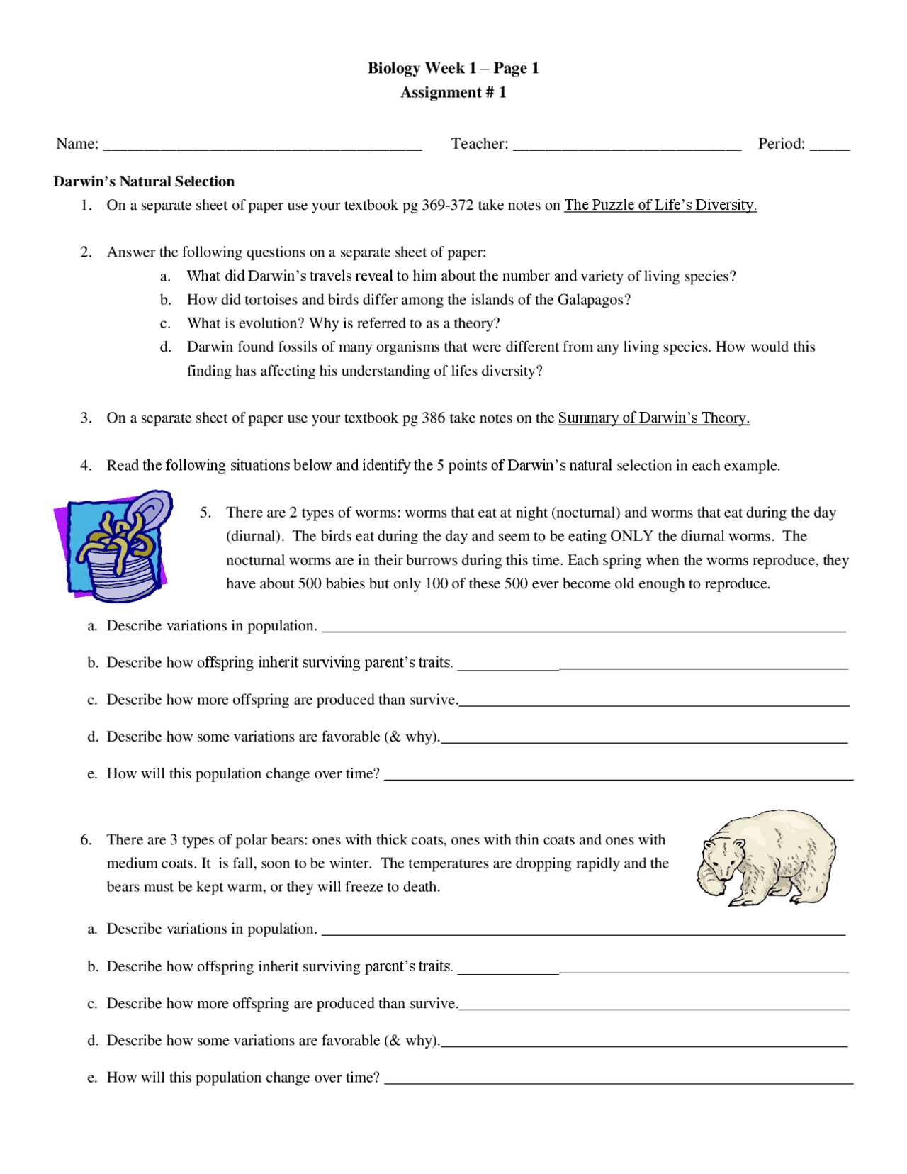 Darwin s Theory Of Natural Selection Exercises And Questions Exercises Biology Docsity