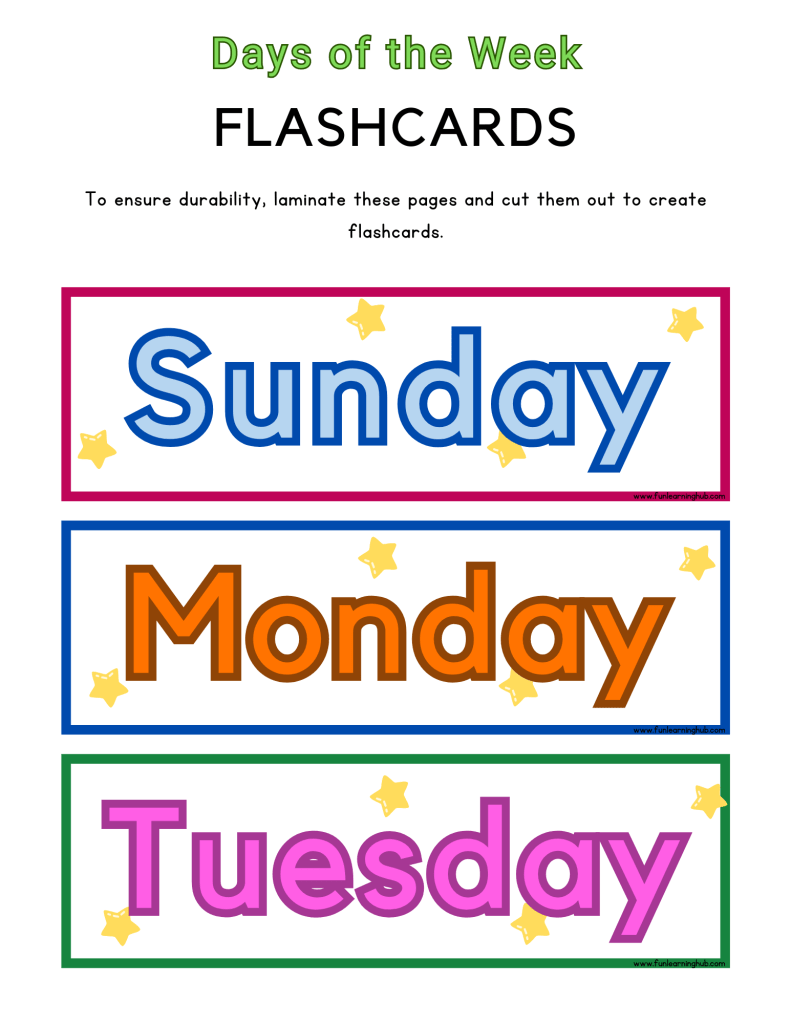 Additionally, days of the week flashcards can be a great tool for building routine and structure in your child’s daily life. By incorporating these flashcards into your daily routine, you can help your kids understand the concept of time and enhance their organizational skills.