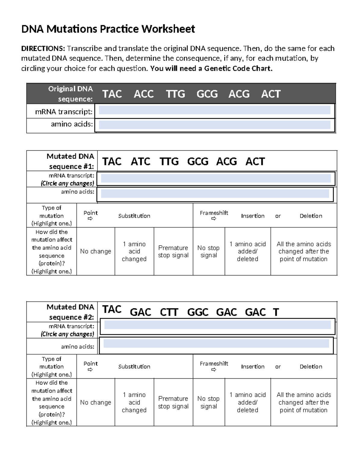 Mutation Practice Worksheet Printable And Digital Made By Teachers