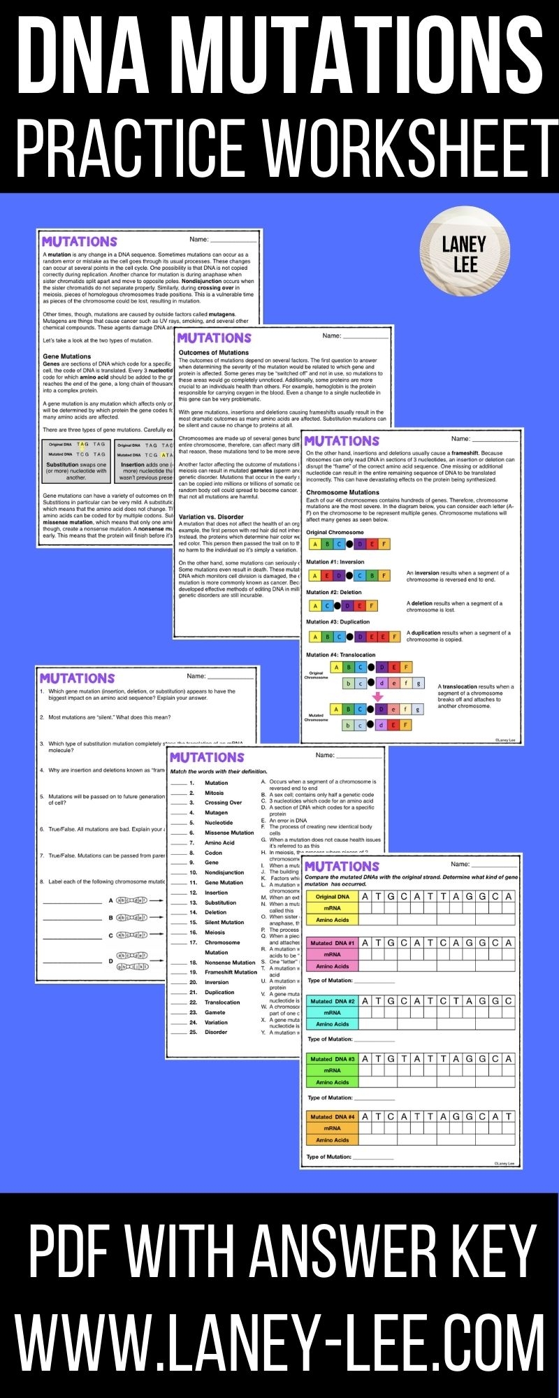 DNA Mutations Practice Worksheet With Answer Key Laney Lee