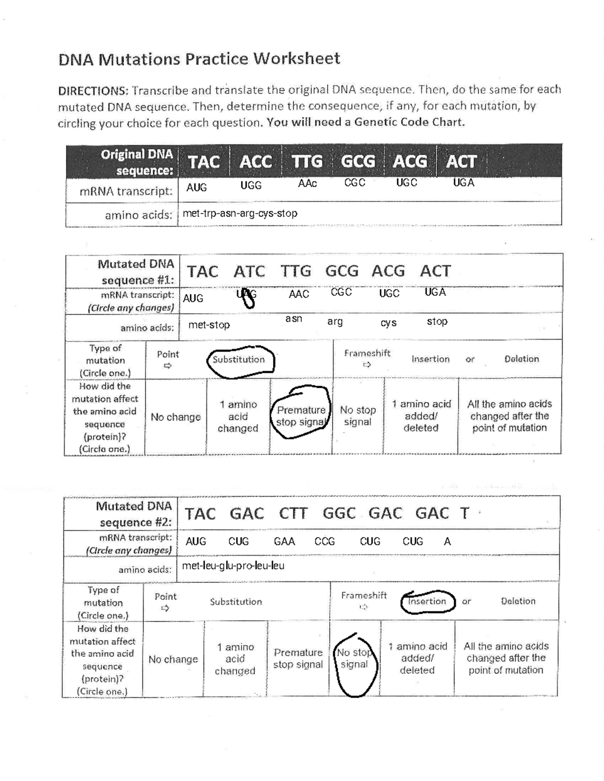 DNA Mutations Practice Worksheet Analysis And Consequence Insights Studocu