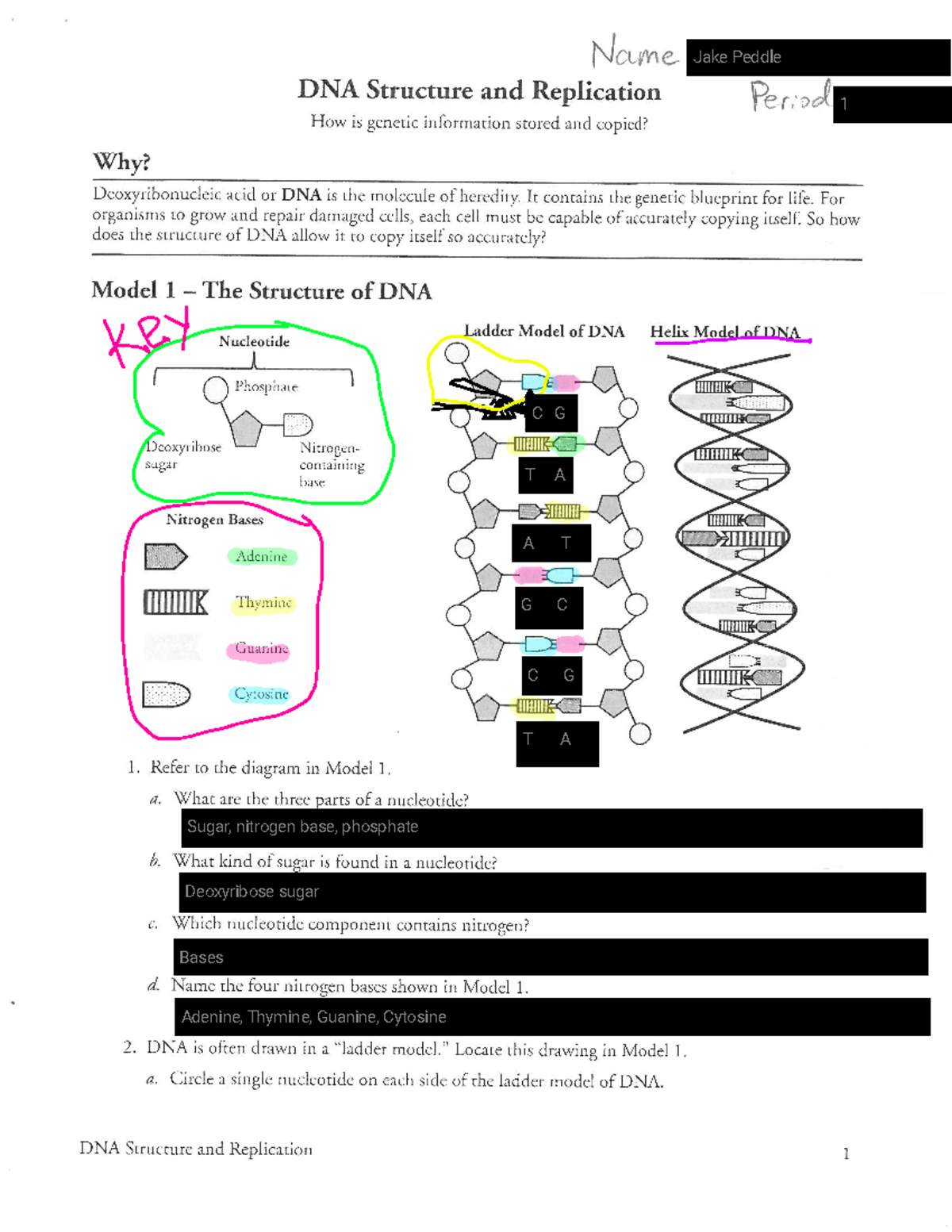 DNA Structure and Replication handout 2 1 Label Each Part Of The Model To The Right Include Studocu
