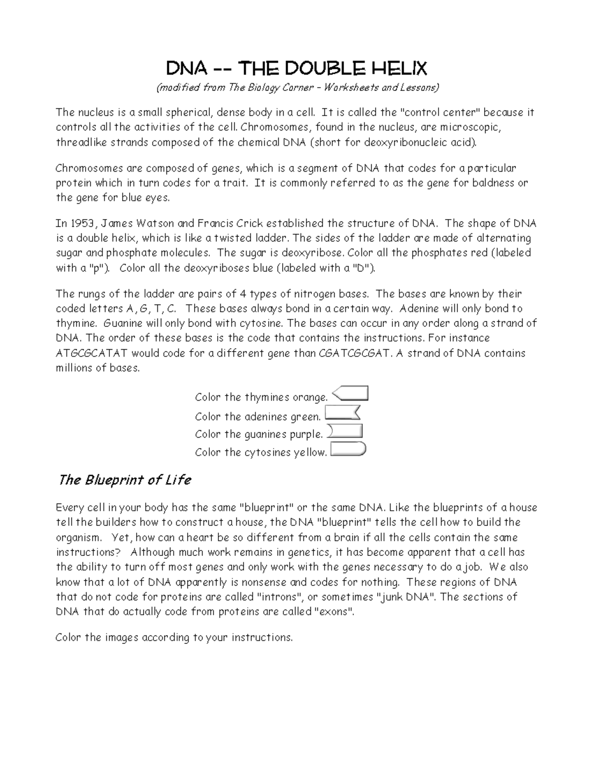 DNA Double Helix Coloring Activity With Questions And Instructions Studocu