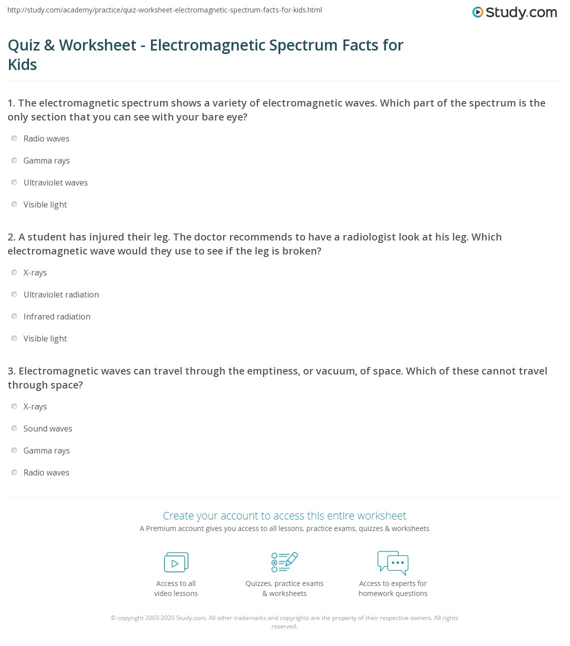 Quiz Worksheet Electromagnetic Spectrum Facts For Kids Study