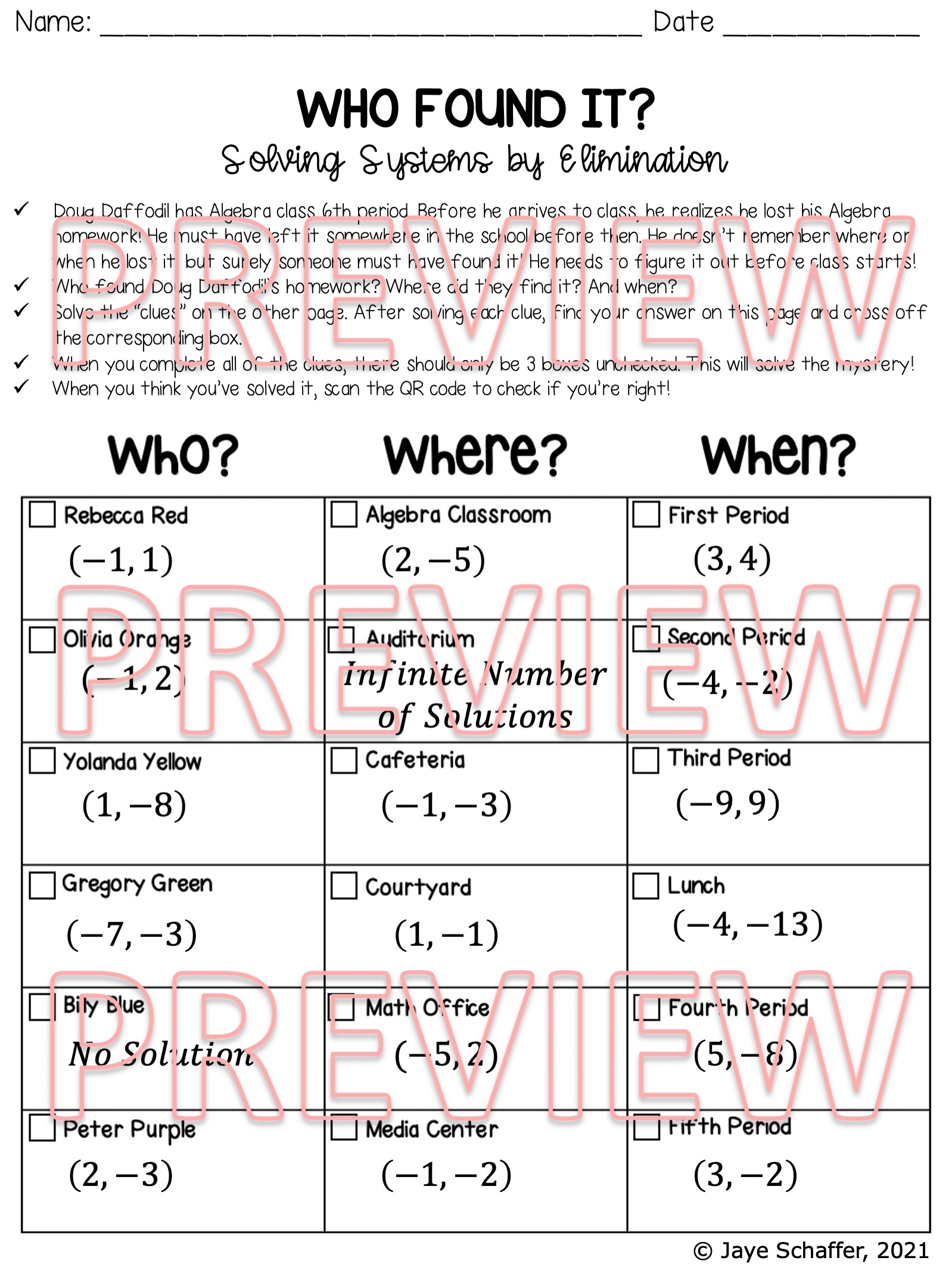 Solving Systems By Elimination Clue Mystery Activity Made By Teachers