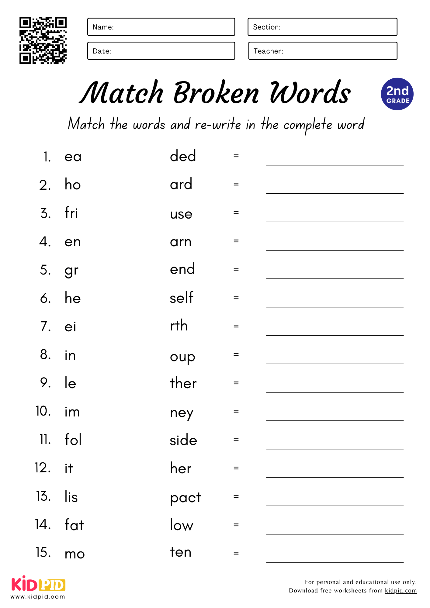 Match Complete The Words Worksheet For Grade 2 Kidpid