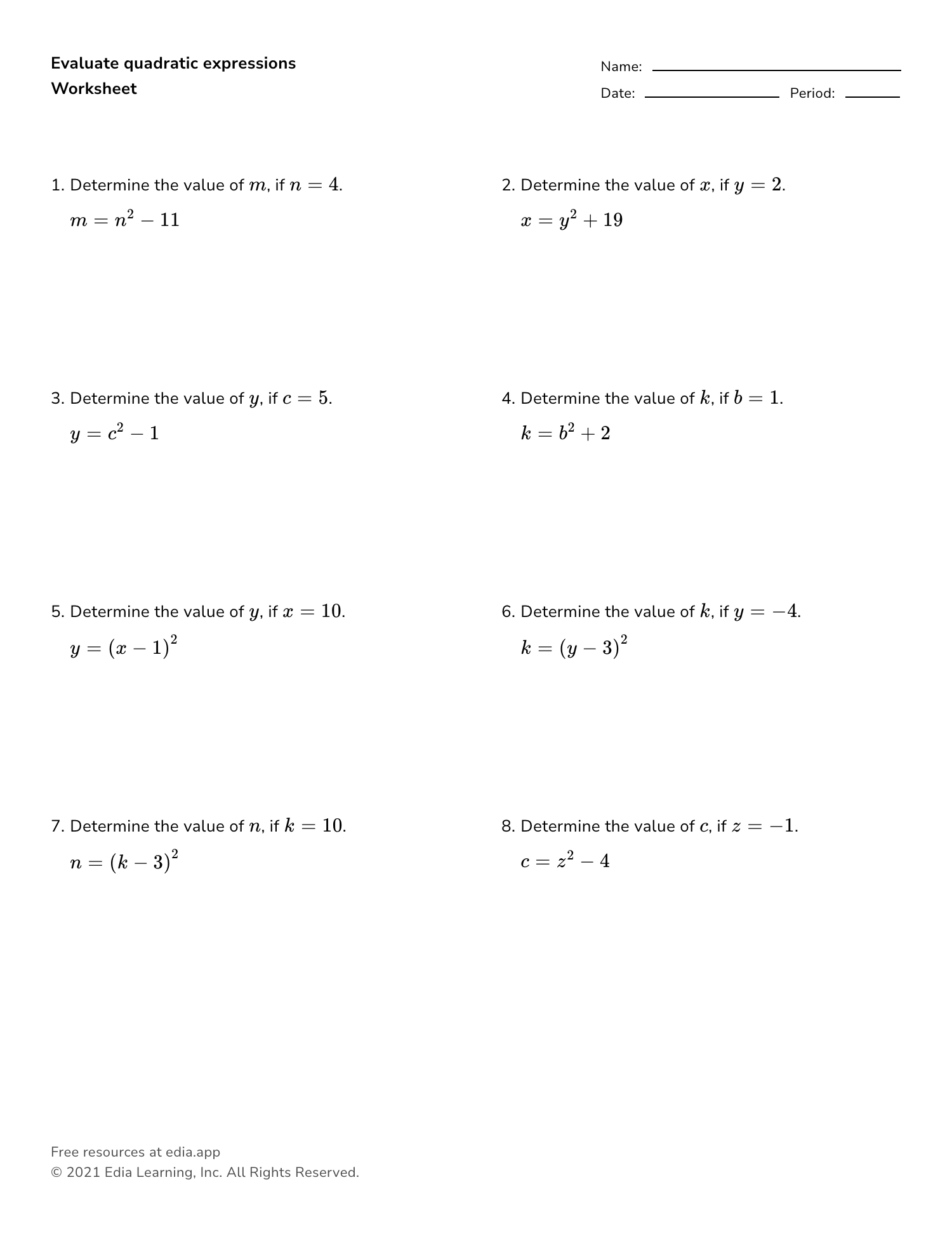 Printable Evaluating Expressions Worksheets Download