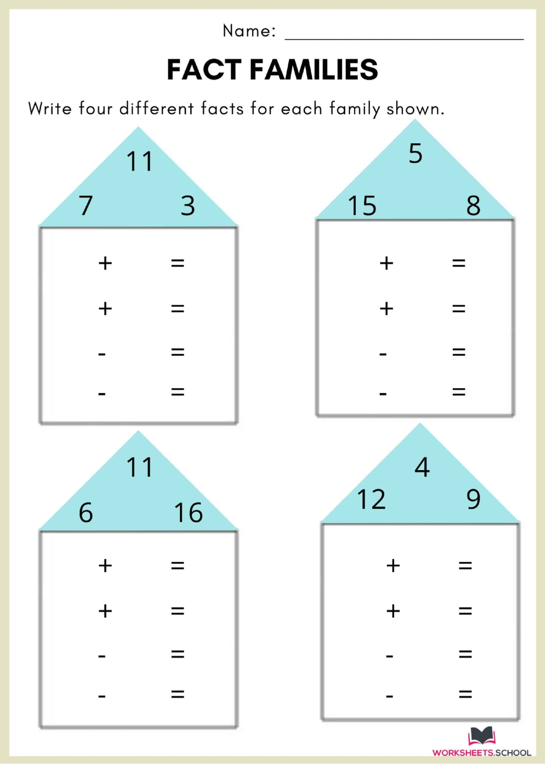 Fact Family Worksheets