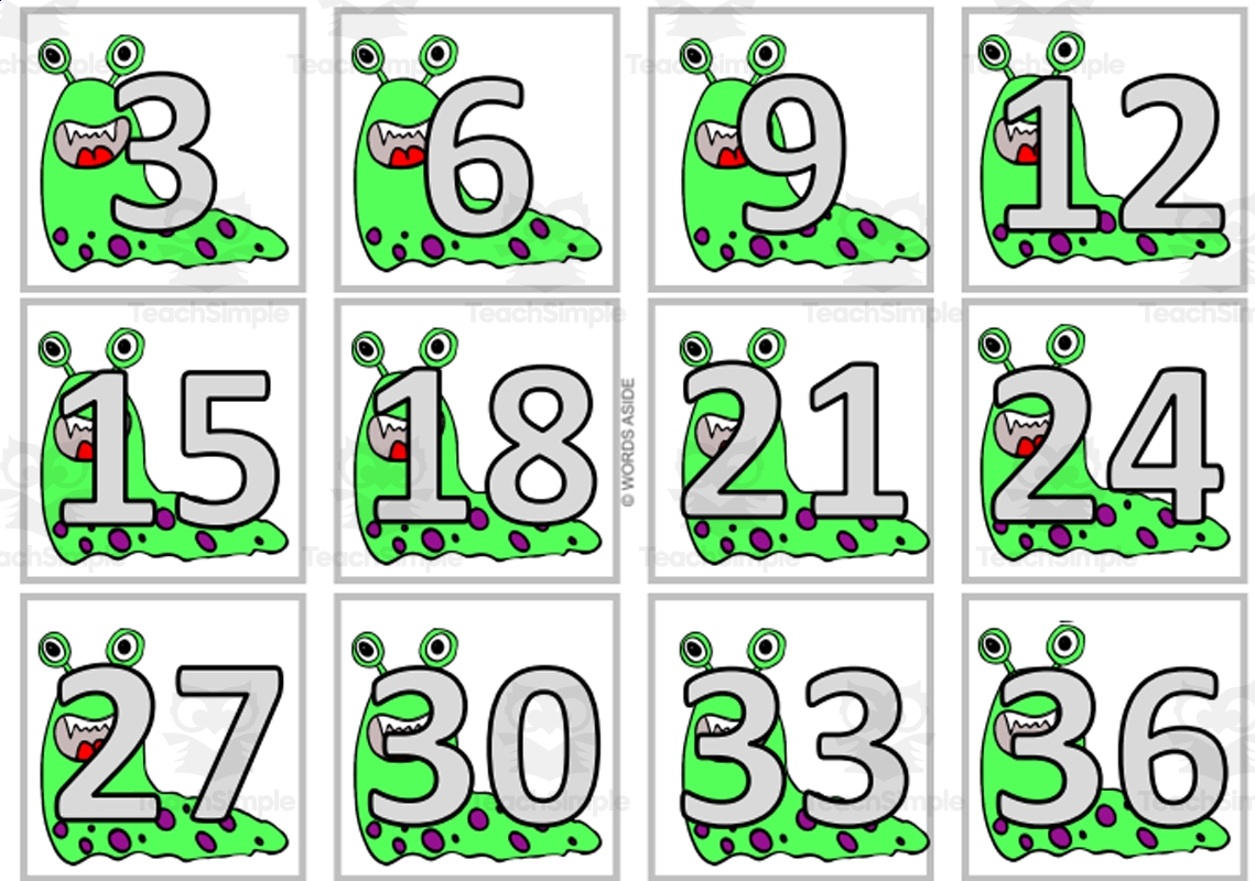 Monster Math Facts Multiplication Cards colored By Teach Simple