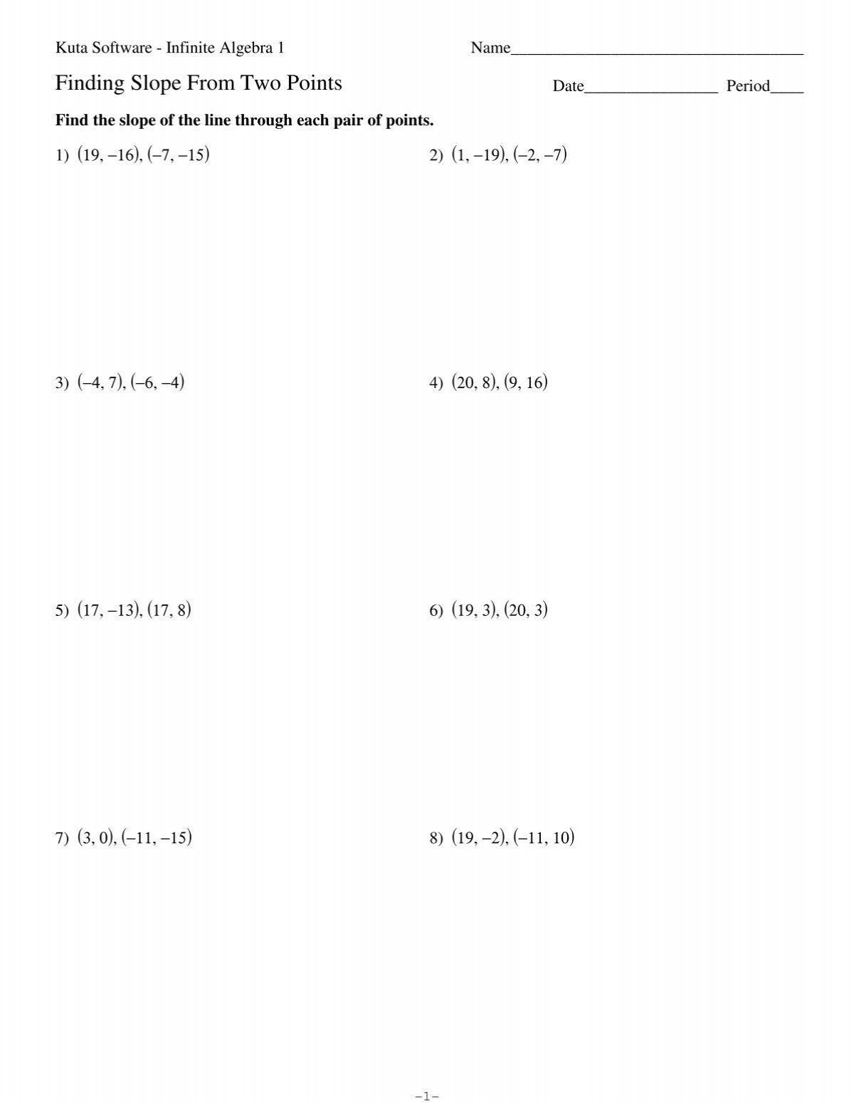 Finding Slope From Two Points Kuta Software