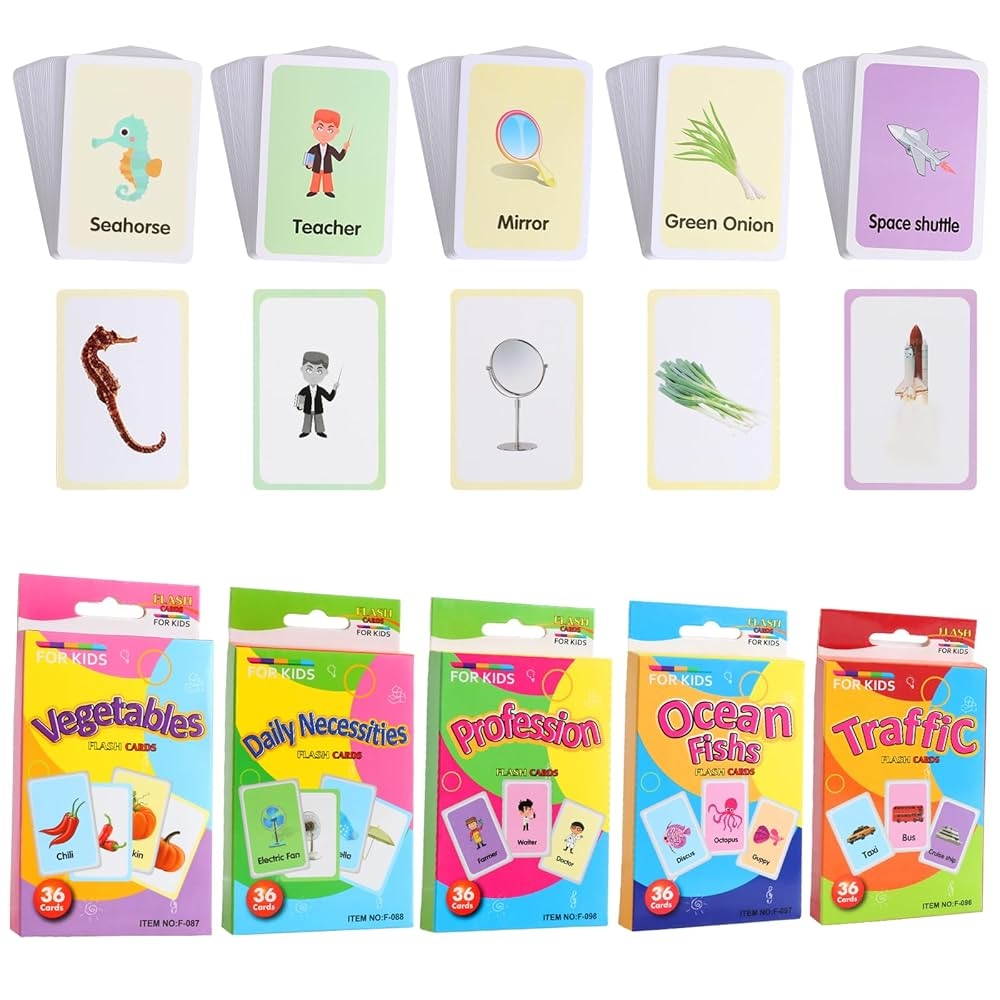 180 Pieces Flashcards For Children Daily Necessities Traffic Ocean Fishs Professions Vegetable Animal Cards Montessori Learning Game English Photo Cards Vocabulary Flashcards For Language Amazon de Toys
